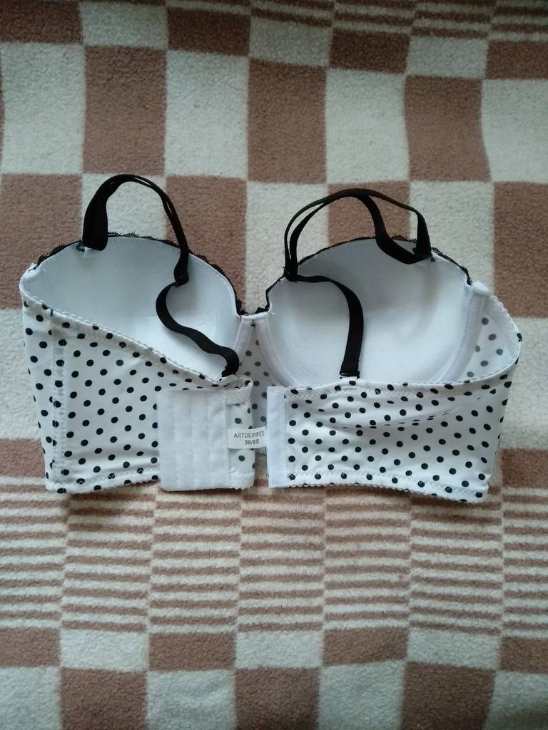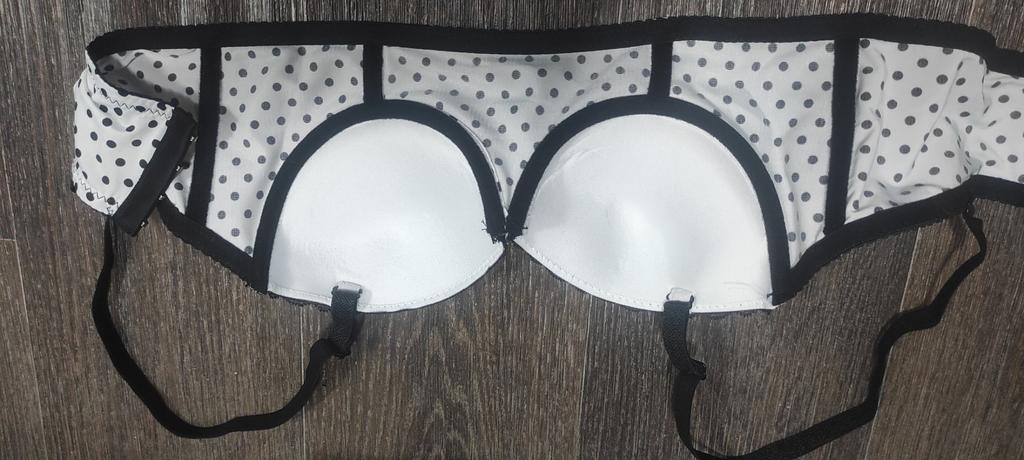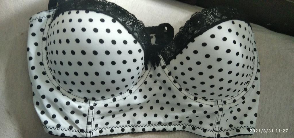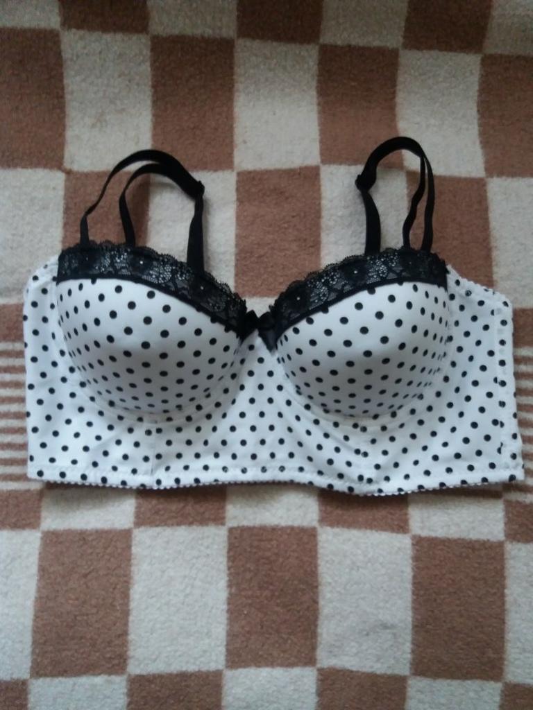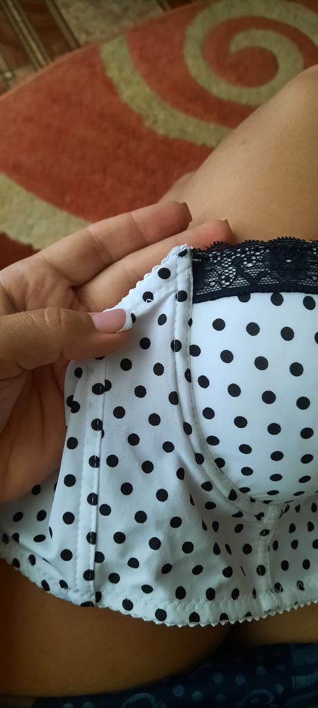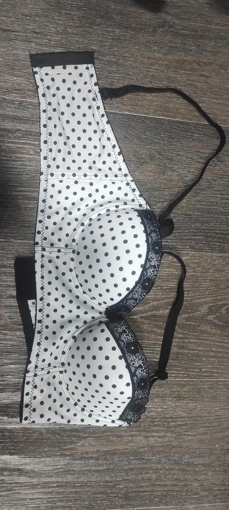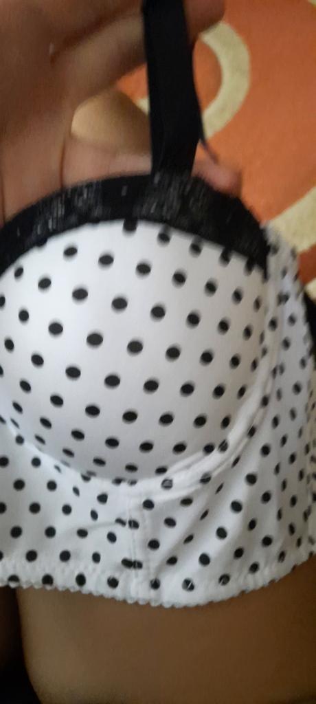 Schön in weiß mit schwarzen Tupfen. Größe 34B perfekt für meine dritte Brust. Beratung!