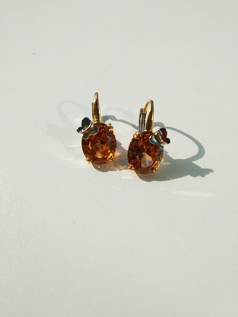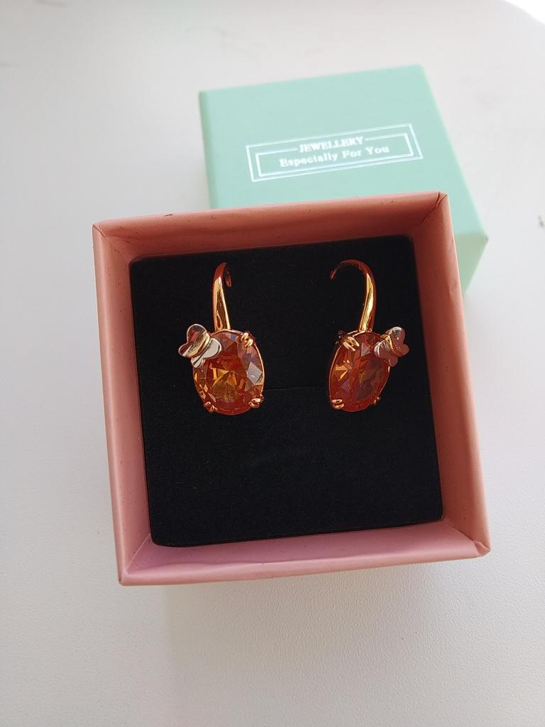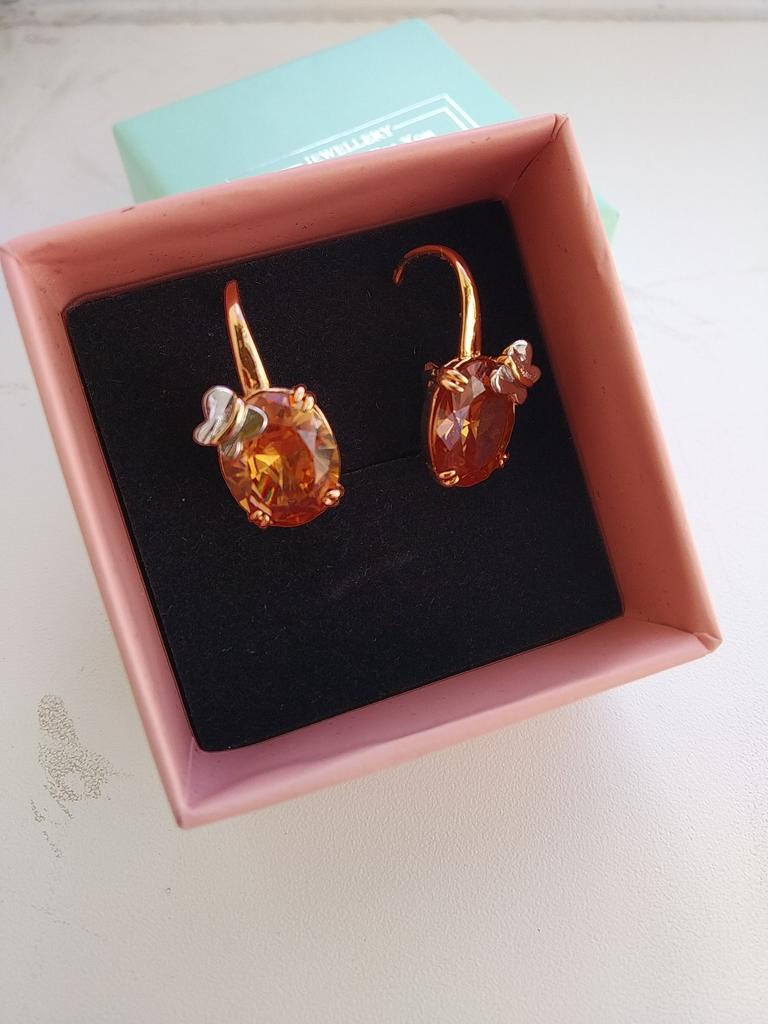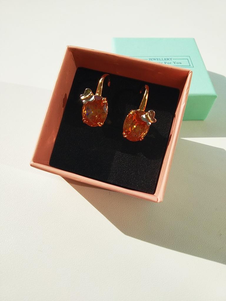 Bernsteinfarbene ovale Zirkonia-Ohrhänger, eleganter vergoldeter Schmuck für Damen