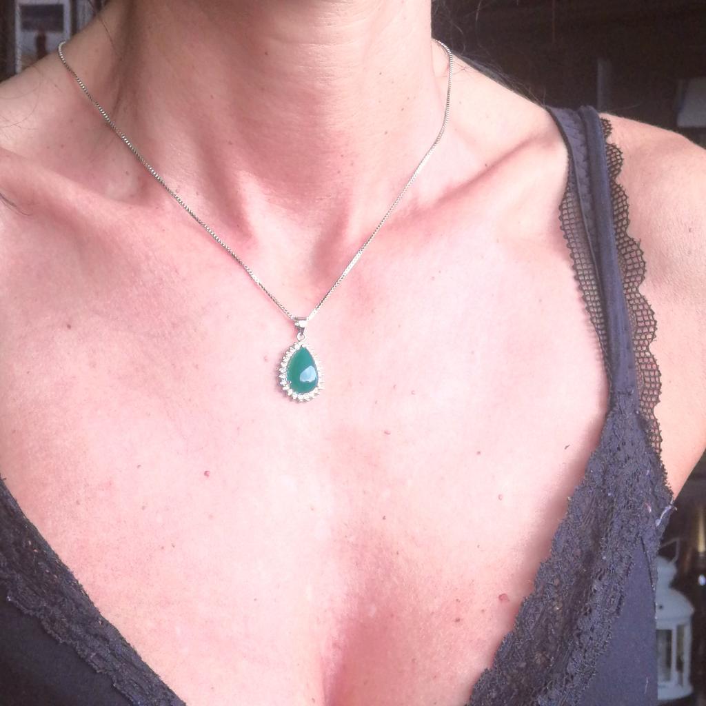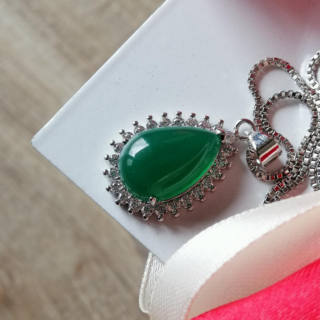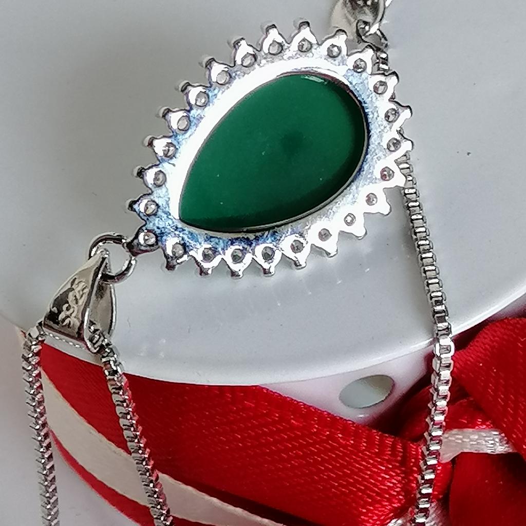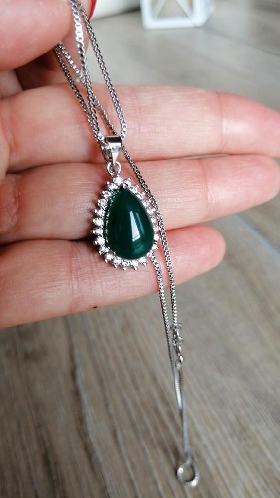 HALSKETTE Eine Halskette mit einem eleganten und raffinierten Stil. Ich bin immer zufrieden mit den Artikeln dieser Marke. Stylische Modelle, günstige Preise und Liebe zum Detail. 😍 In Italien angekommen mit Sendungsverfolgung in 24 Tagen. Superschneller Versand. Verpackung: Karton Die Kette wird mit einem Organza-Stoffbeutel geliefert. Perfekt für ein Geschenk, Sie werden einen tollen Eindruck machen. In das Paket legte der Verkäufer auch ein Geschenk: ein kleines Putztuch. Halskettenmaterial: versilbertes Kupfer. Am Anhänger der grüne Stein im Tropfenschliff mit den Maßen 19 x 14 mm, rundherum kleine weiße Zirkone für mehr Glanz. Die Kette ist 45 cm lang. Hakenverschluss, ungewöhnlich aber funktionell. Die Kristalle sind extrem hell und sorgfältig gesetzt. Keine Mängel, keine Klebeflecken. Kaufempfehlung 👌