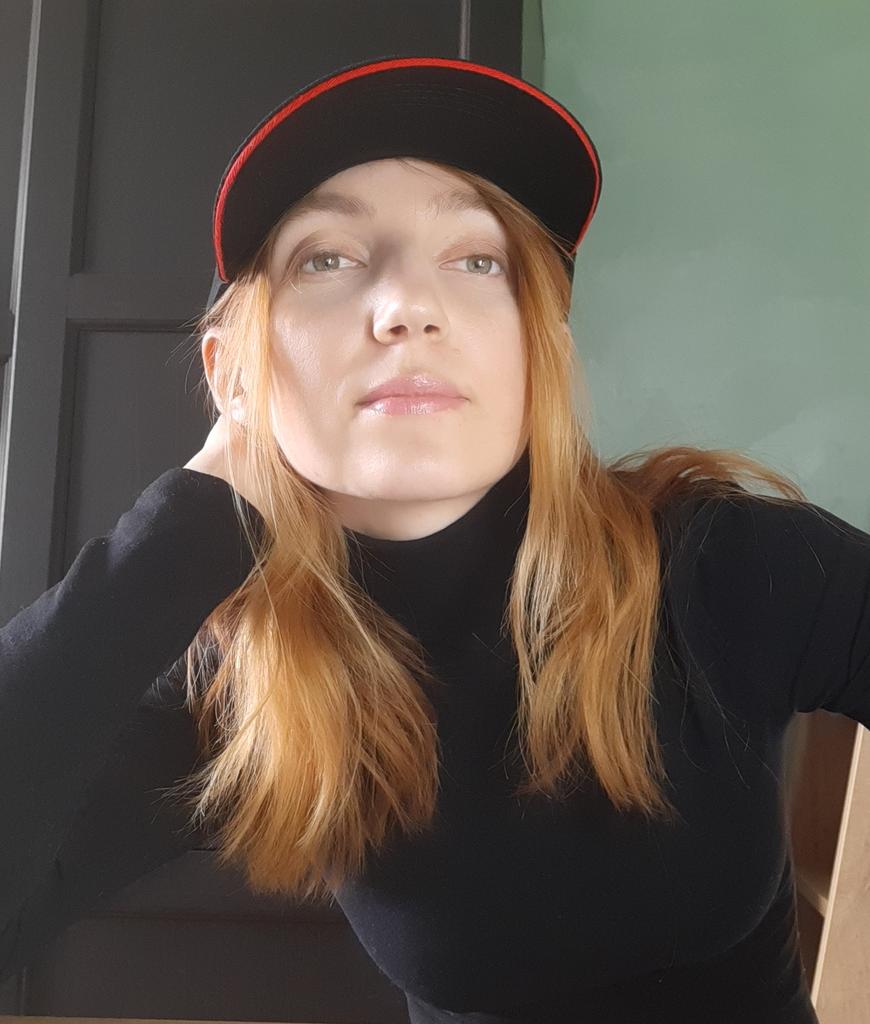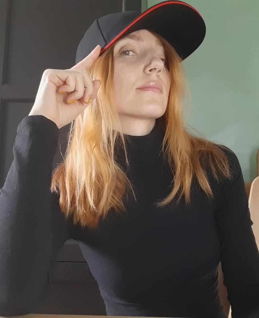 Blöde Baseballkappe (mit festem Vorderteil. Sie ist deutlich maskuliner. Die Kappen haben eine „fließendere“ Form. Diese ist aus Eiche. Der Stoff ist dünn. Vor dem Kauf gab es nicht genügend echte Fotos. Im Allgemeinen ist es so Ganz gut. Aber wenn ich mich im wirklichen Leben entscheiden müsste, würde ich es nicht kaufen. Aber das sind persönliche Vorlieben.