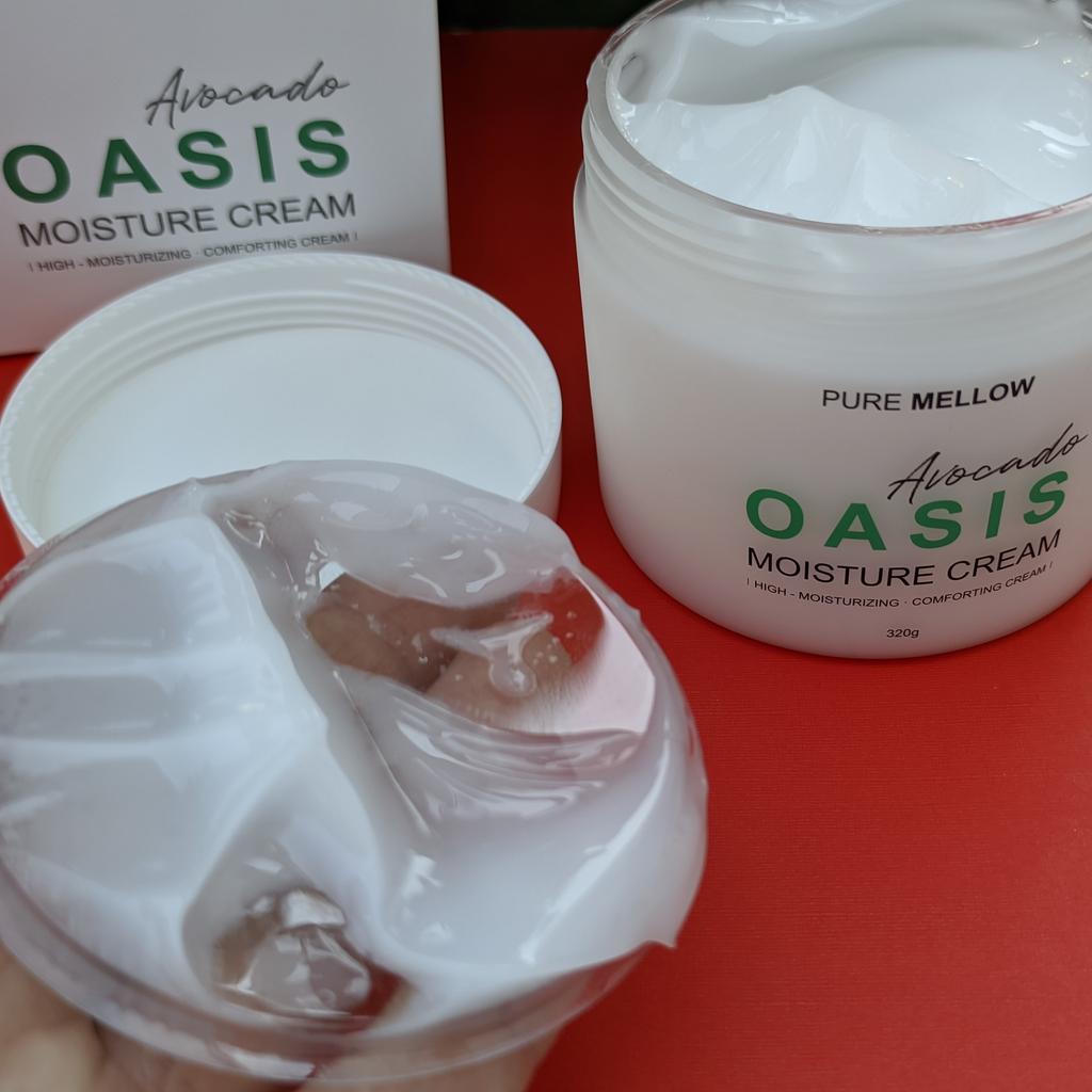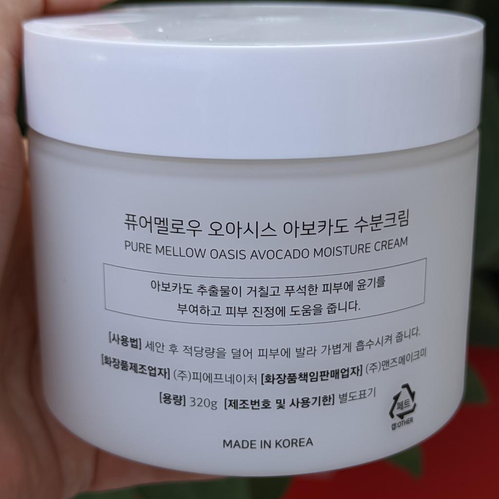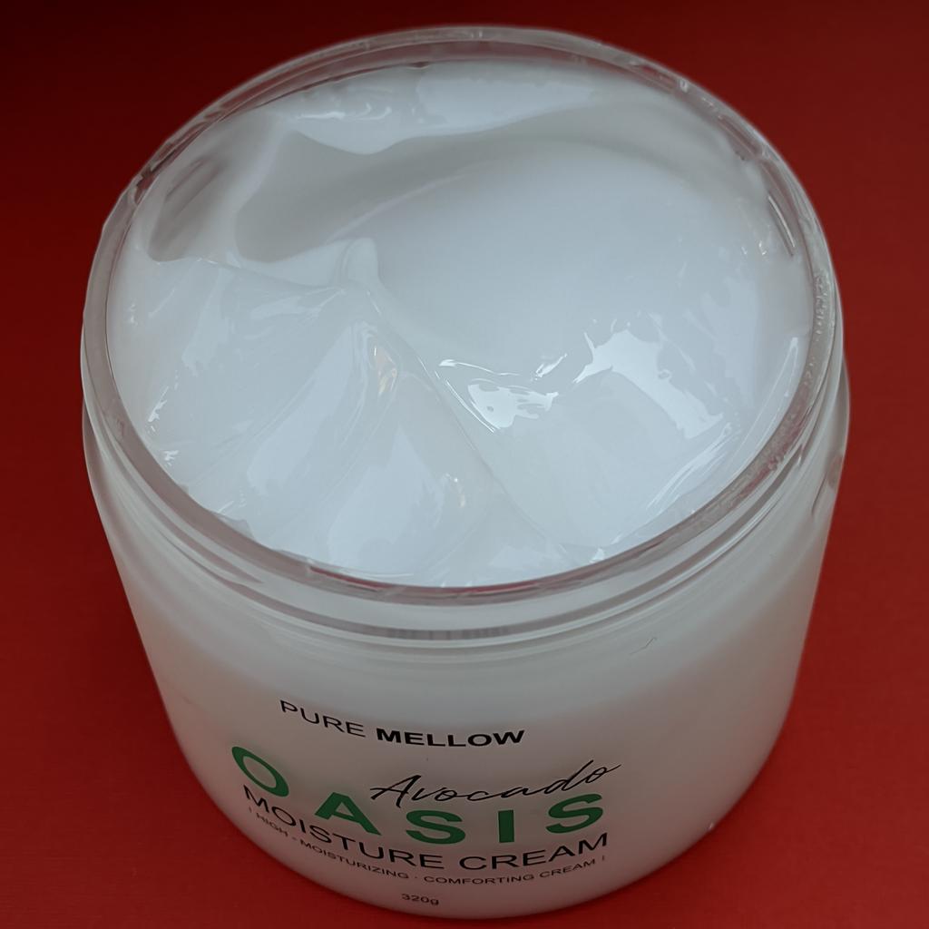Avocado-Feuchtigkeitscreme. Es riecht super gut. Es ist leicht, spendet aber viel Feuchtigkeit. Bei Kontakt mit der Haut verwandelt es sich in Wasser.