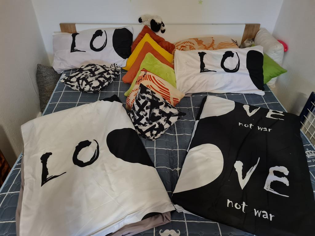 Eigentlich bin ich zufrieden aber leider waren die Kissen falsch das finde ich sehr schade es sind 2 gleiche geschickt worden . Das sieht natürlich nicht schön aus. Sehr schade.