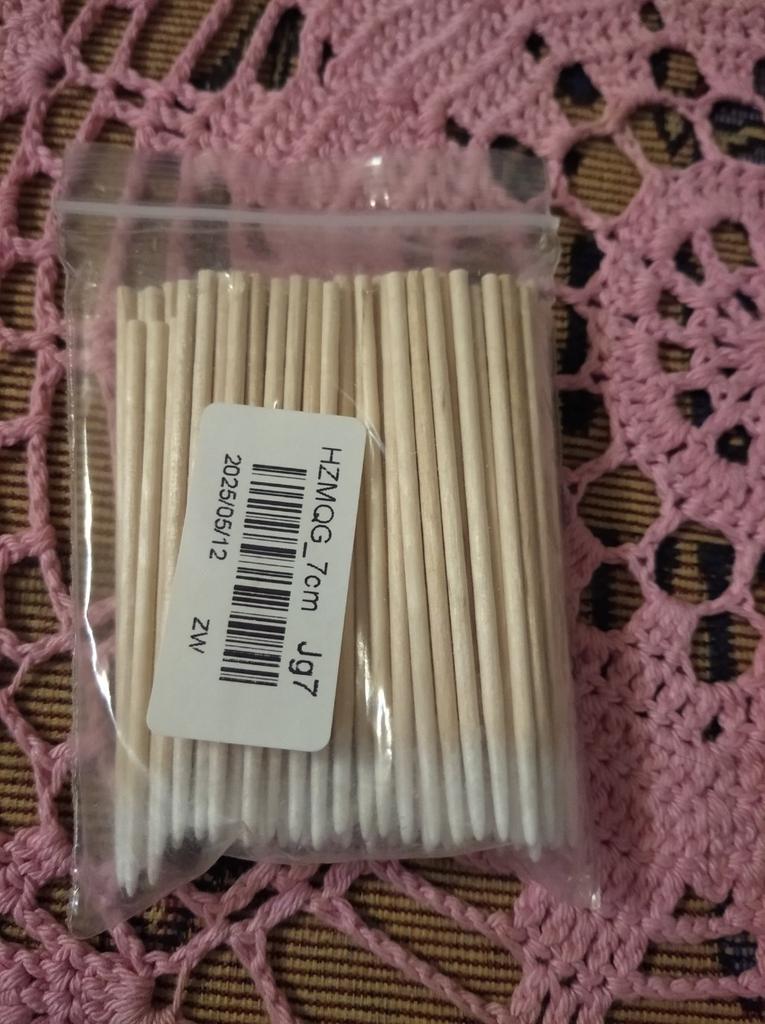Dies ist das zweite Mal, dass ich Wattestäbchen bestelle. Eine sehr dünne Schicht Watte, praktisch zum Entfernen kleiner Flecken. Ich verwende es, wenn ich meine Nägel mit Lack überziehe. Sehr zufrieden. Ich empfehle es zum Kauf.