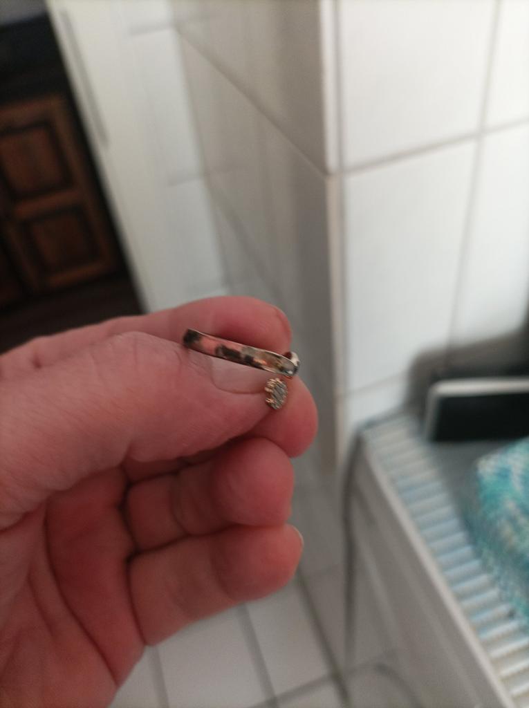 Hatte ihn gerade mal 1 Tag hne das der Ring mit irgendwelche Chemikalien in Verbindung kam. Am nächsten Morgen war die gesamte Beschichtung ab und der Ring ist kaputt. Der Silberstempel sieht auch nicht echt aus.