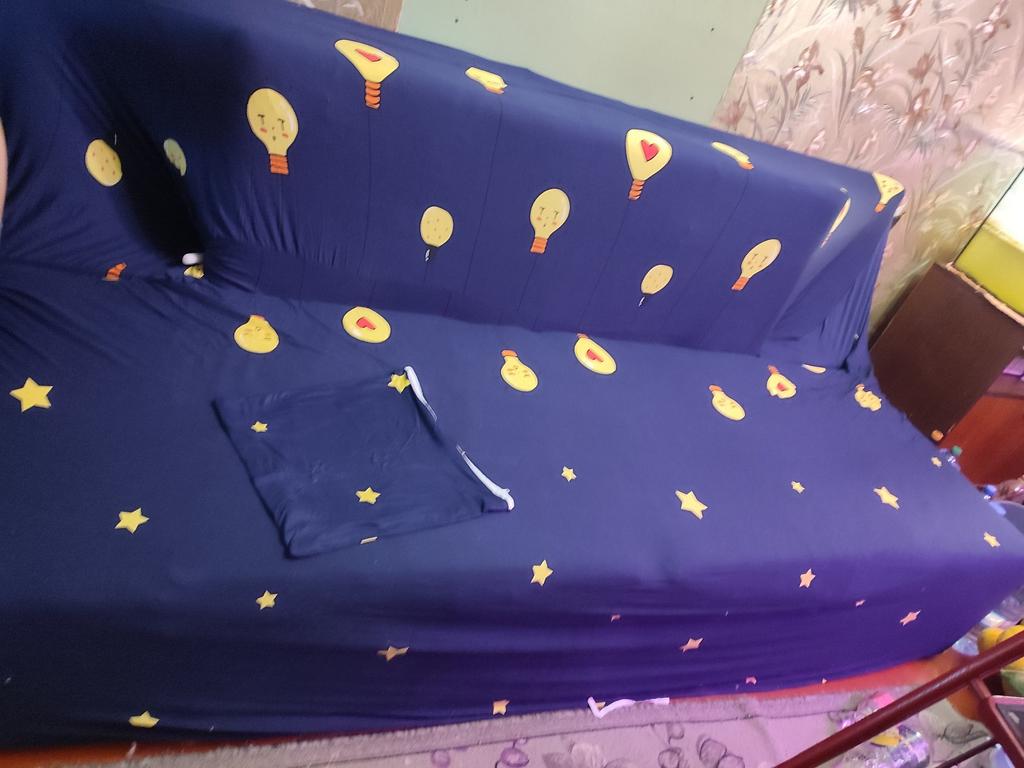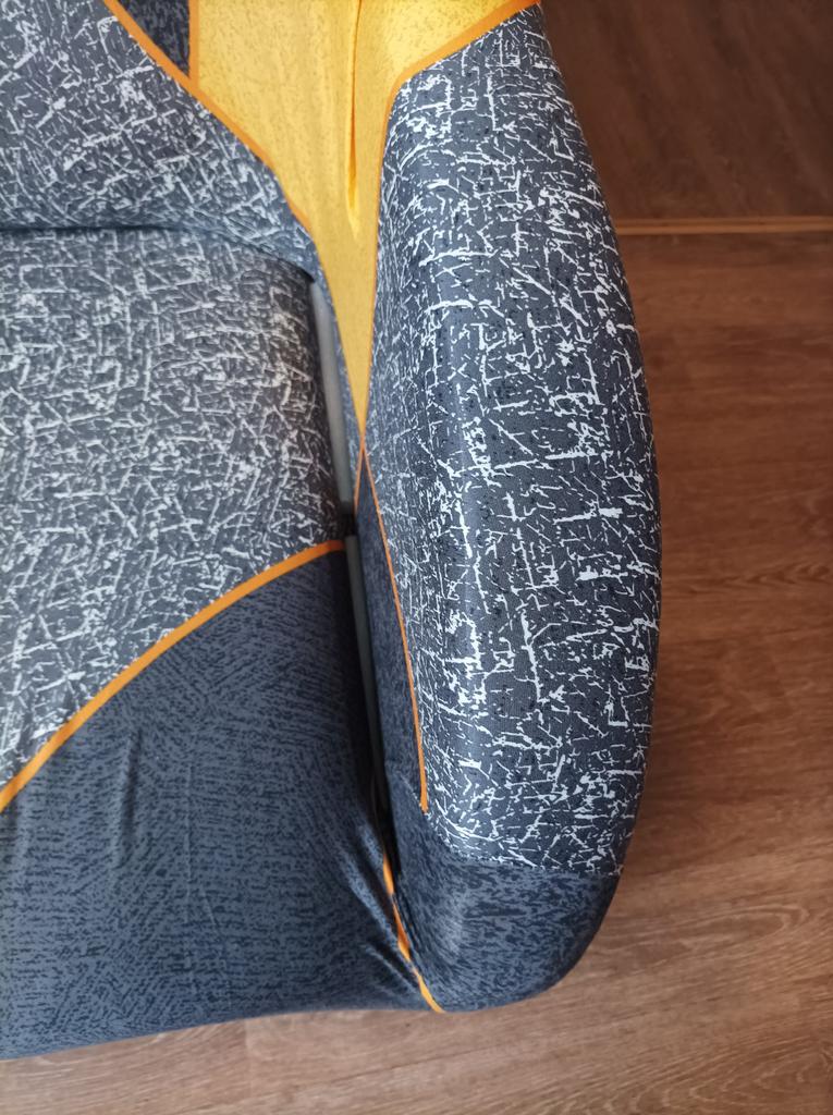 Die Größe passt nicht zu meinem Sofa, 150 cm lang, sie haben es kaum angezogen. Sie haben sich einfach auf den Stuhl eingestellt. Also haben wir gewartet und das ist das Ergebnis.