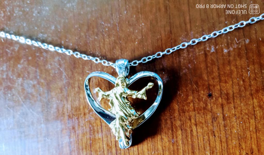 14KRGP Kreuz Jesus Weiß & Gold Herz Anhänger Damen Schmuck Anhänger Halskette Silberkette