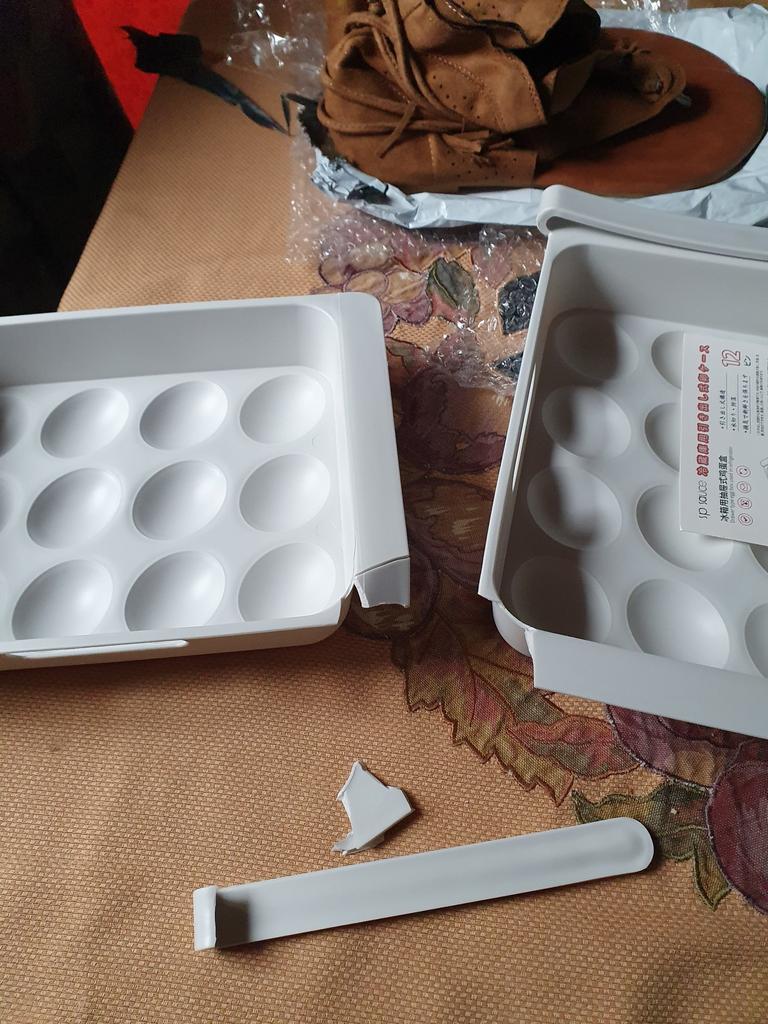 Lässt sich nicht so gut im Kühlschrank unterbringen, die Entnahme der Eier ist nicht so gut, da die gesamte Konstruktion heraus gezogen werden muss. Ein bisschen zu weit raus gezogen und die Eier liegen auf dem Boden.