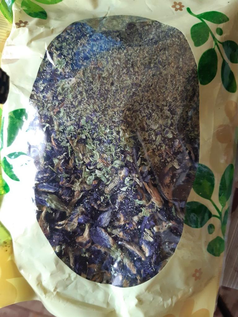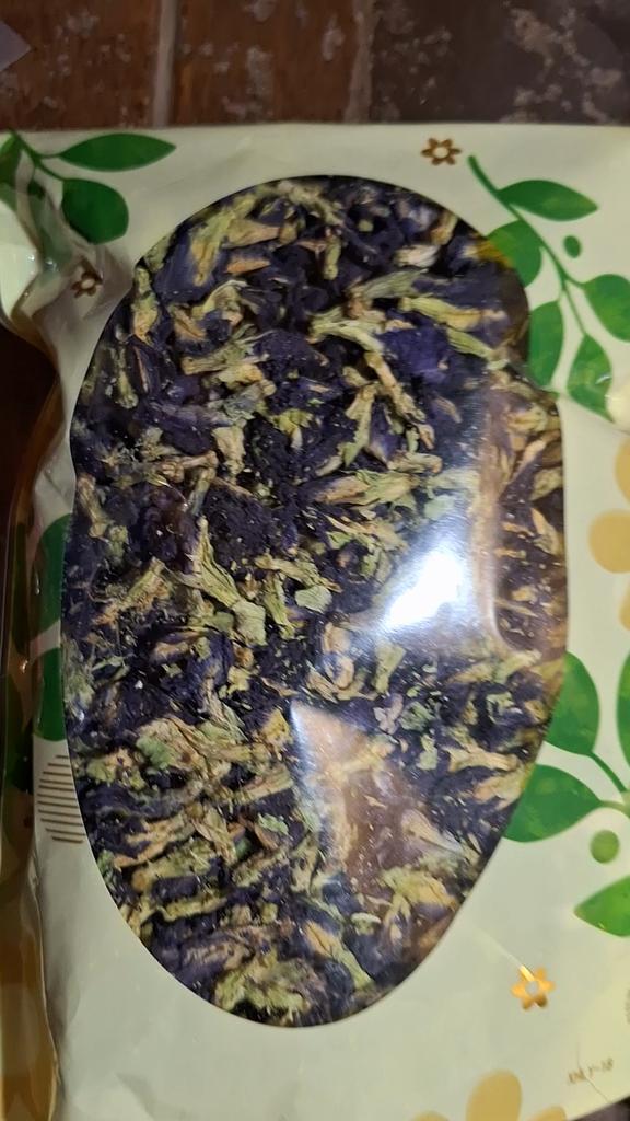 Die Verpackung ist intakt, die Knospen sind intakt, sie riechen nach getrockneten Bananen 😄 Interessanter, nicht aufdringlicher Geschmack. Es kann entweder pur oder gemischt mit Milch oder Hibiskusknospen getrunken werden. Dann gibt es Tee a la himmlisch blau und mit Hibiskus einen sauren lila Tee)