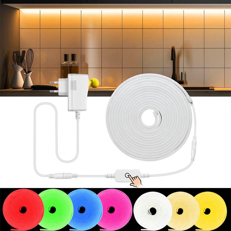Stufenloses Dimmen von Neonlicht-LED-Streifen, 1 m, 2 m, 3 m, 4 m, 5 m, LED-Streifen, Touch-Schalter, Steuerung, LED-Hintergrundbeleuchtung, Schrank, Küche, Lampe, 220 V bis 12 V, EU-Stecker