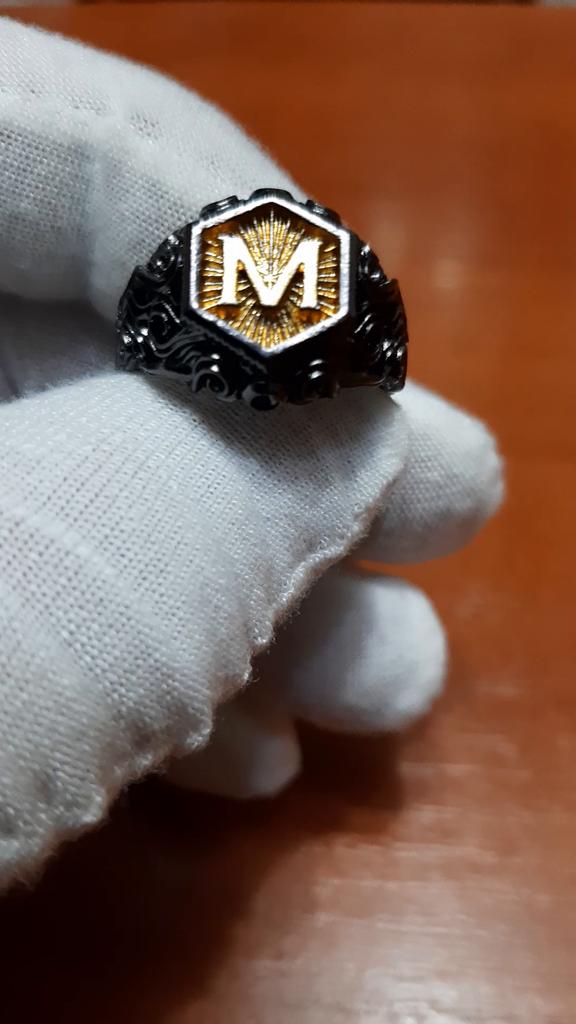 Schwarzer Ring mit dem Buchstaben M für Männer
