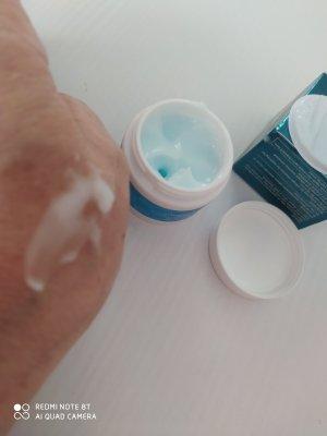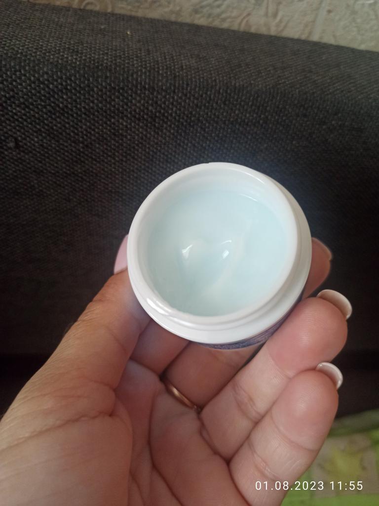 Anti-Falten-Gesichtscreme. Die Dose ist klein, 25 g. Der Geruch ist sehr angenehm. Ich benutze sie seit drei Tagen... Ich werde die Bewertung später aktualisieren, wenn ich sie etwas länger benutze, weil ich jetzt sehe solche Veränderungen nicht.