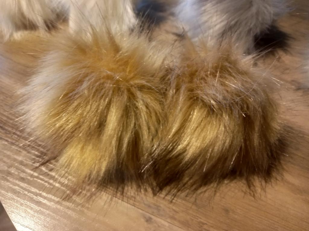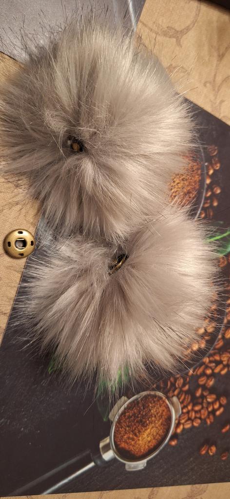 In der Packung sind zwei Pompons. Die grauen haben Nieten. Ein Teil des Stollens ist auf die Kappe genäht. Ideal zum Waschen, wenn die Bommeln leicht entfernt werden können. Die Größe des Pompons beträgt ca. 10-12 cm.