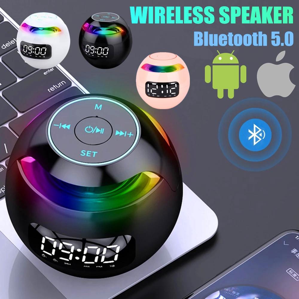 Multifunctional 5W Bass Bluetooth 5.0 Wireless Speaker with Clock Alarm Colorful LED Display FM Radio