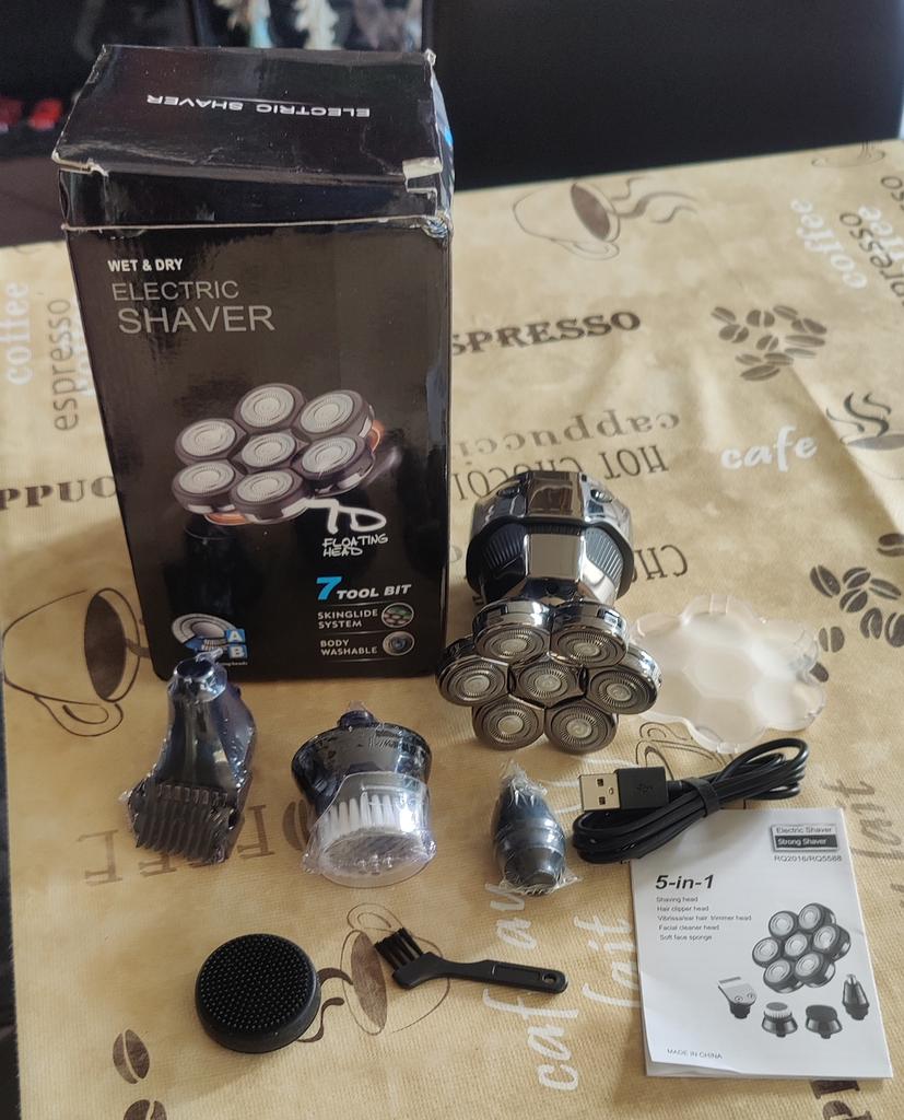 Rasierer für Männer, 5-in-1-Glattkopfrasierer, 7-Kopf-Elektrorasierer für Männer, Gesicht und Kopf, glatt, wasserdicht, kabellos