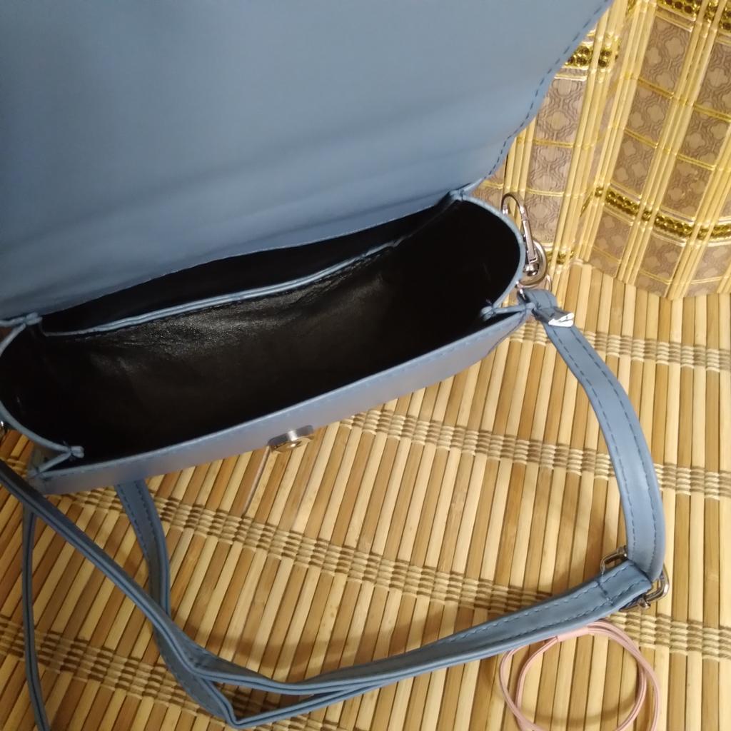 Die Tasche ist auf den ersten Blick sehr klein, aber es passen die nötigsten Dinge hinein. Langer, dünner Riemen, silberfarbene Beschläge. Es sind keine Taschen vorhanden.
