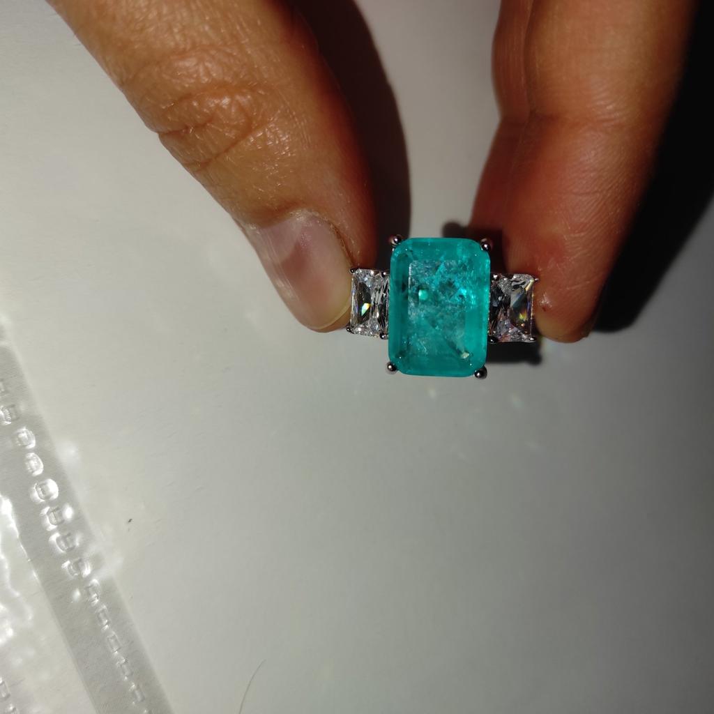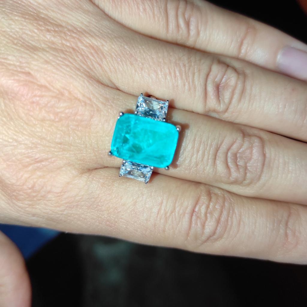 Gica Gema Luxuriöser Damenring aus 925er-Sterlingsilber mit 10 x 14 mm Paraiba-Edelsteinen, Silber, Hochzeit, edler Schmuck, Geschenk