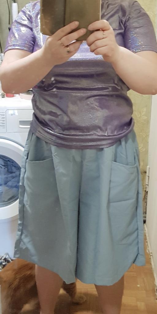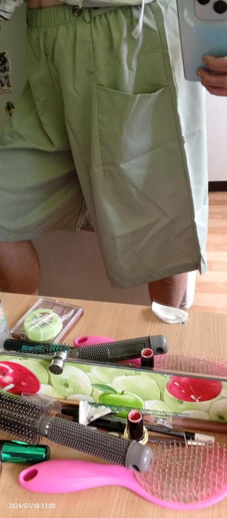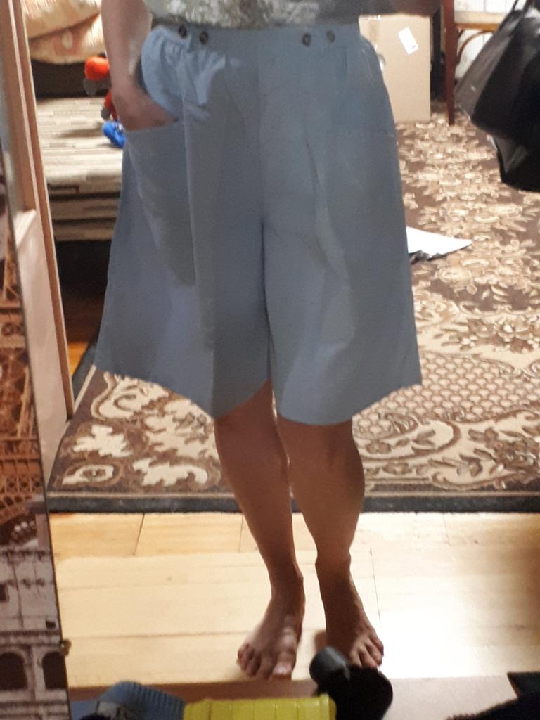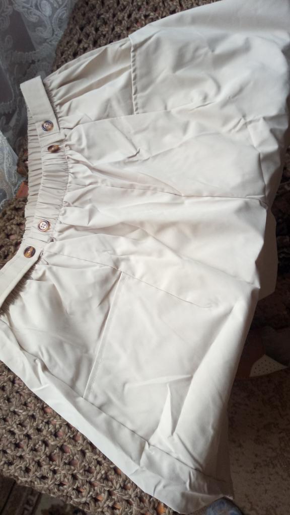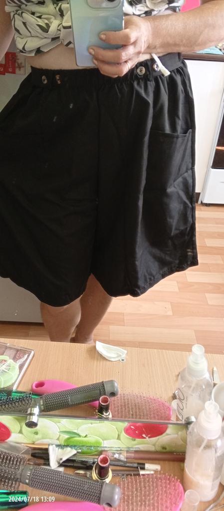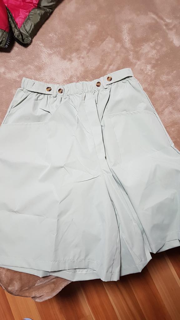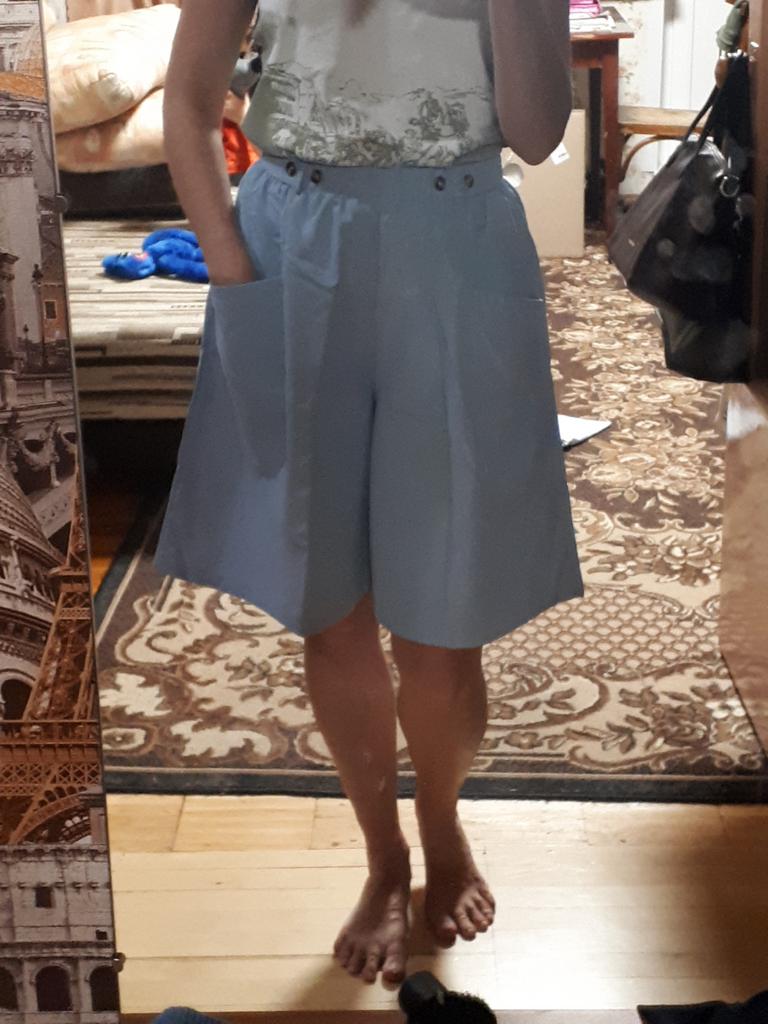 Die Shorts sind super, der Stoff ist so angenehm, die Länge ist wie ein Rock bis zum Knie. Gefällt mir.