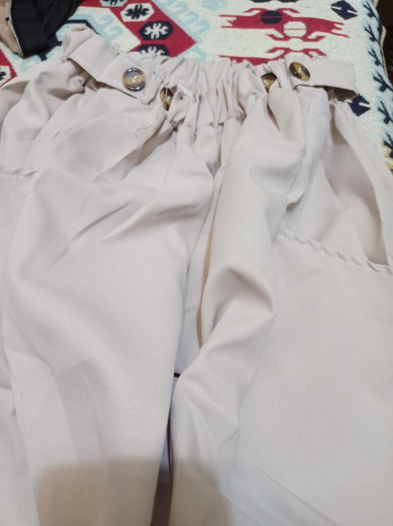Der Stoff ist gut, fühlt sich angenehm an, die Taille ist genau richtig, die Hüften sind breit.