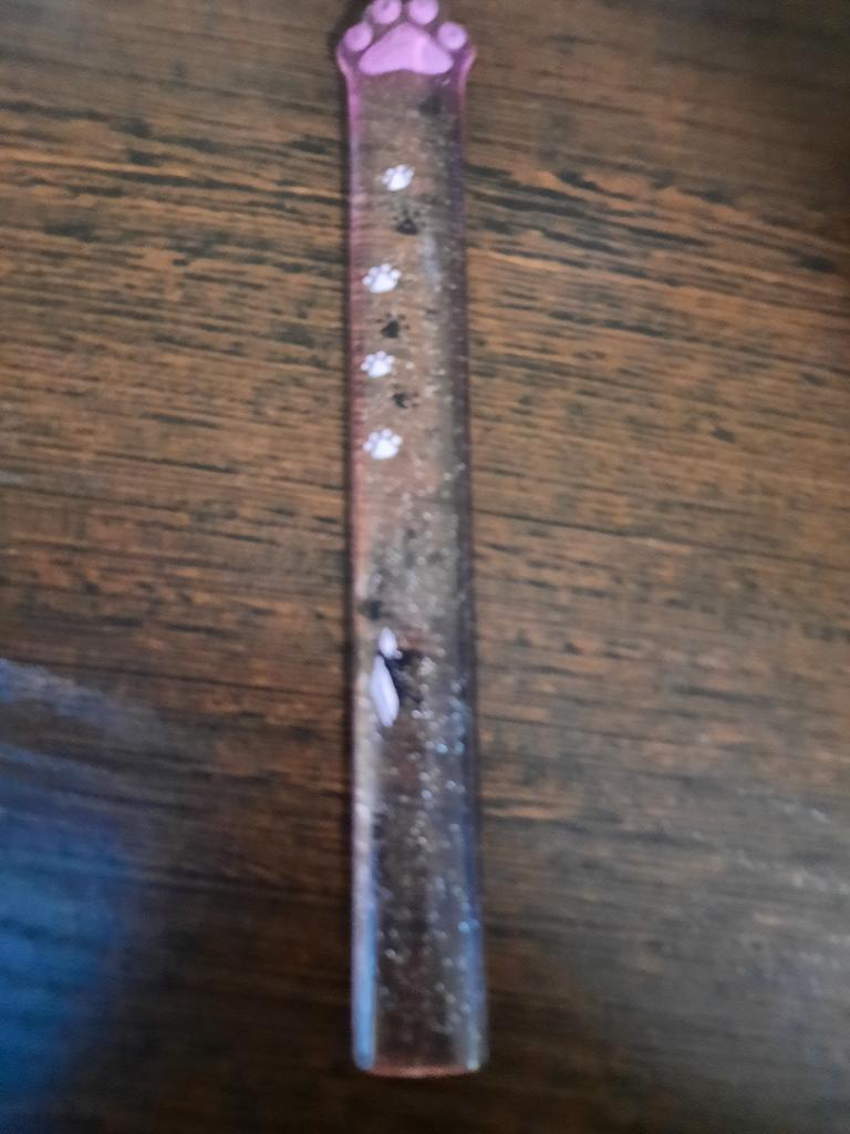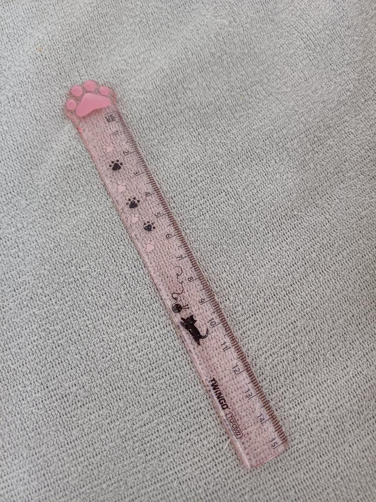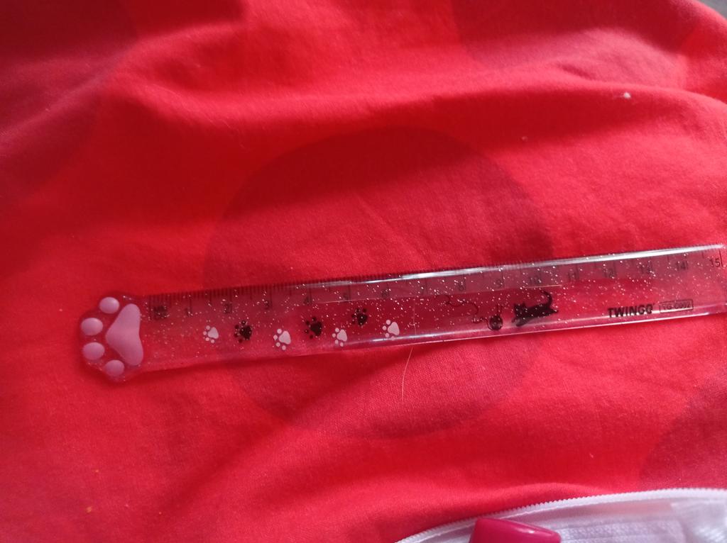 Cooles Lineal mit Pfote und Pailletten. Bis zu 15 cm. Dick, haltbar, wodurch die Wahrscheinlichkeit geringer ist, dass es bricht. Ich empfehle