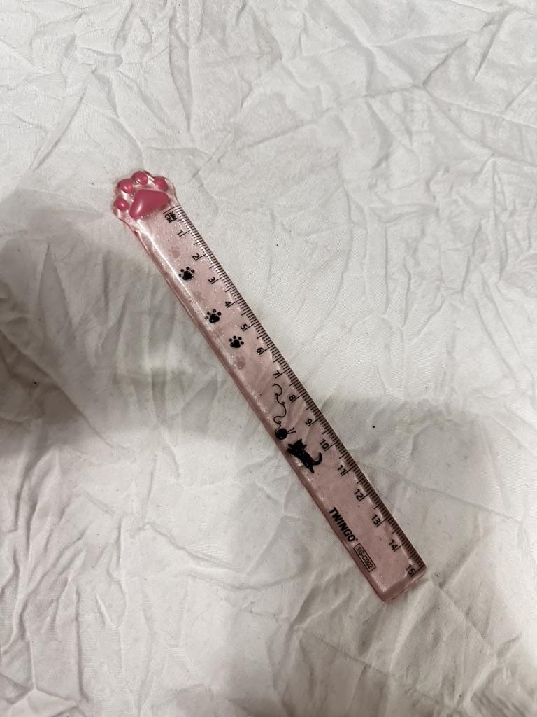 Katzenregel 🐱 15cm Lineal. Acrylmaterial Es hat eine schöne pfotenförmige Katzendekoration. Es ist absolut wunderschön und bezaubernd. Es sind zwei Farben erhältlich (lila und pink). Die Qualität ist außergewöhnlich und die perfekte Größe, um sie in einer Tasche zu tragen. Ich liebe es! 😍😍 Außerdem war der Verkäufer sehr nett und hat mir zwei Katzenaufkleber geschenkt. Es hat mir sehr gut gefallen 💖 Ich empfehle den Kauf dieses Lineals jetzt, wo das Schuljahr beginnt 🤭
