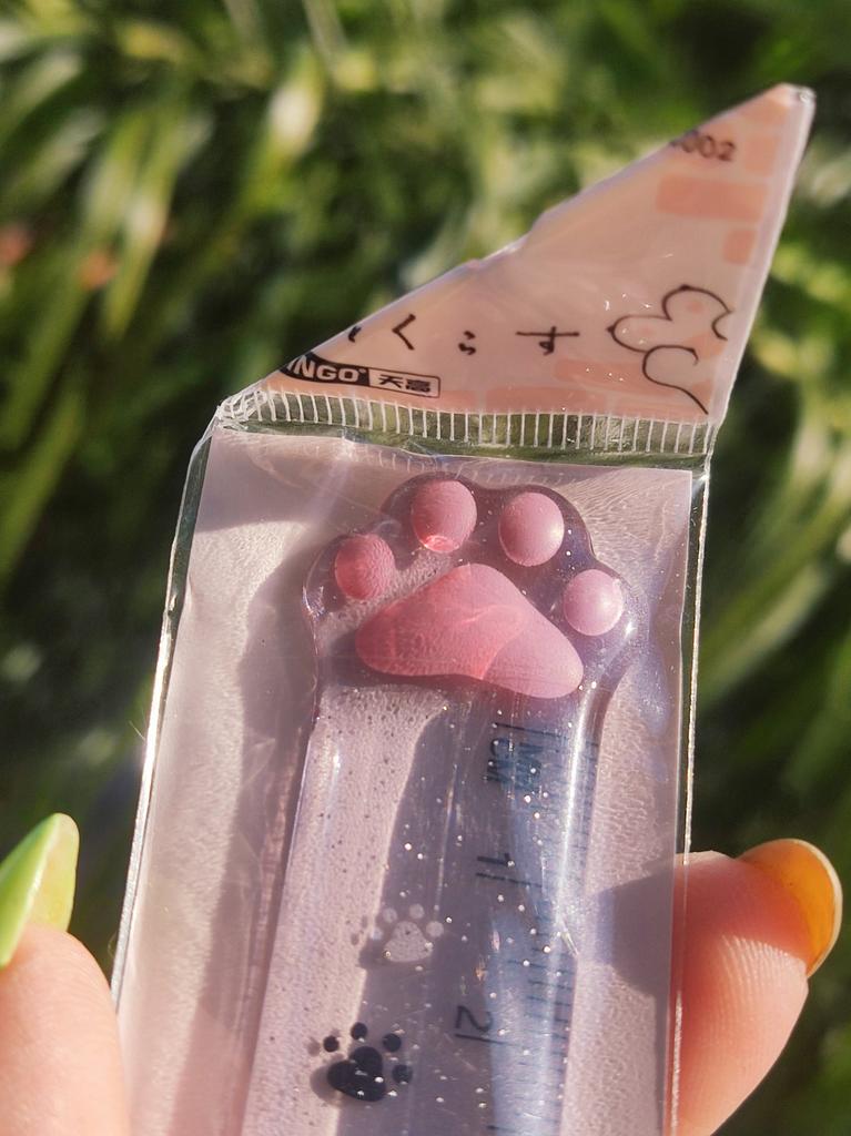Ein sehr süßes und kawaii Lineal: 3 Die Tatze ist geprägt, das Design klasse und das Material angenehm. Sie haben auch einen Aufkleber als Geschenk geschickt💓
