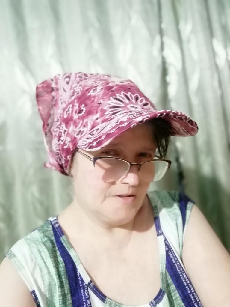 Ein schönes Kopftuch, mit großem Schirm, wird auf der Datscha sehr nützlich sein, danke!