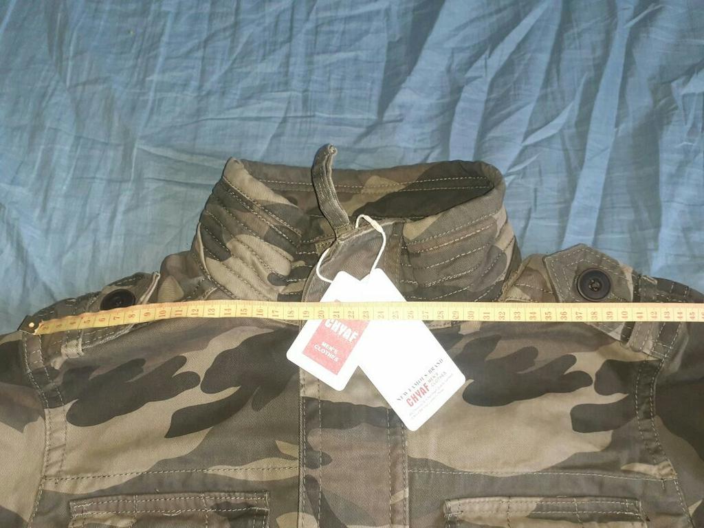 Die Jacke ist ausgezeichnet, das Material ist Baumwolle 100%, aber die Größe ist direkt Rücken an Rücken. Das heißt, tragen Sie keine Jacke darunter, sondern nur ein T-Shirt.