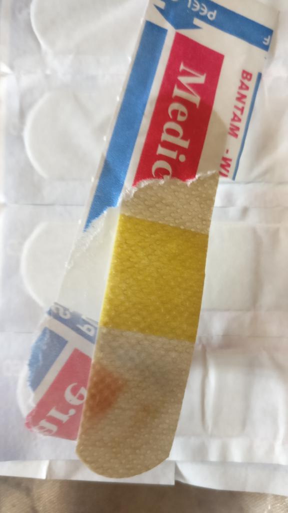 Kleben von der Haut ab, wenn man es um den Finger wickelt, haftet es gut an sich selbst.
