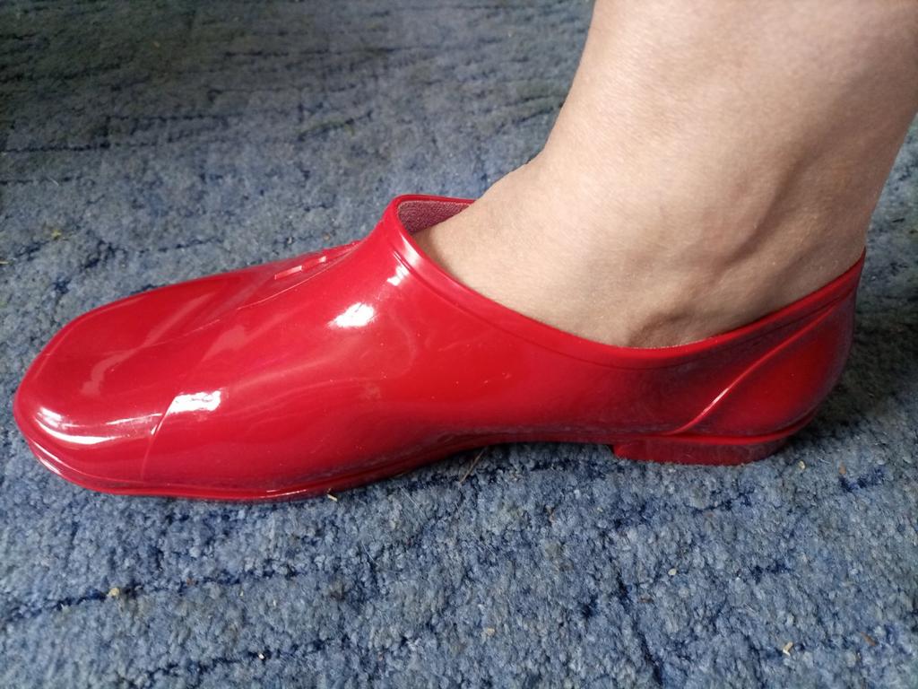 Für Größe 25 sind sie knapp, aber ansonsten bequem, für breite Füße, bei geschwollenen Füßen sogar ideal, Gummi ist dünn, weich, ein leichter Geruch ist vorhanden, hoffe, er verfliegt. GOOD'OK