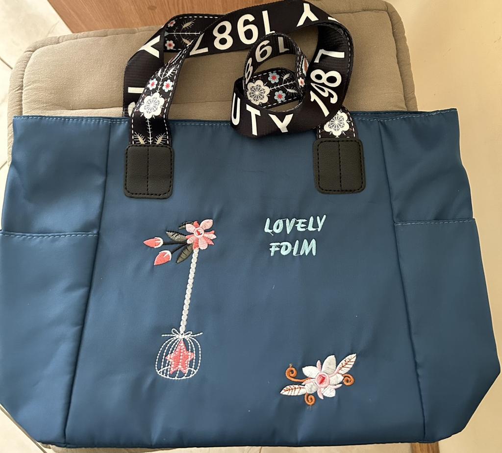 Die Tasche hat mir gut gefallen, viele Taschen, ordentliche Stickerei, die Henkel wären etwas länger, aber es reicht.