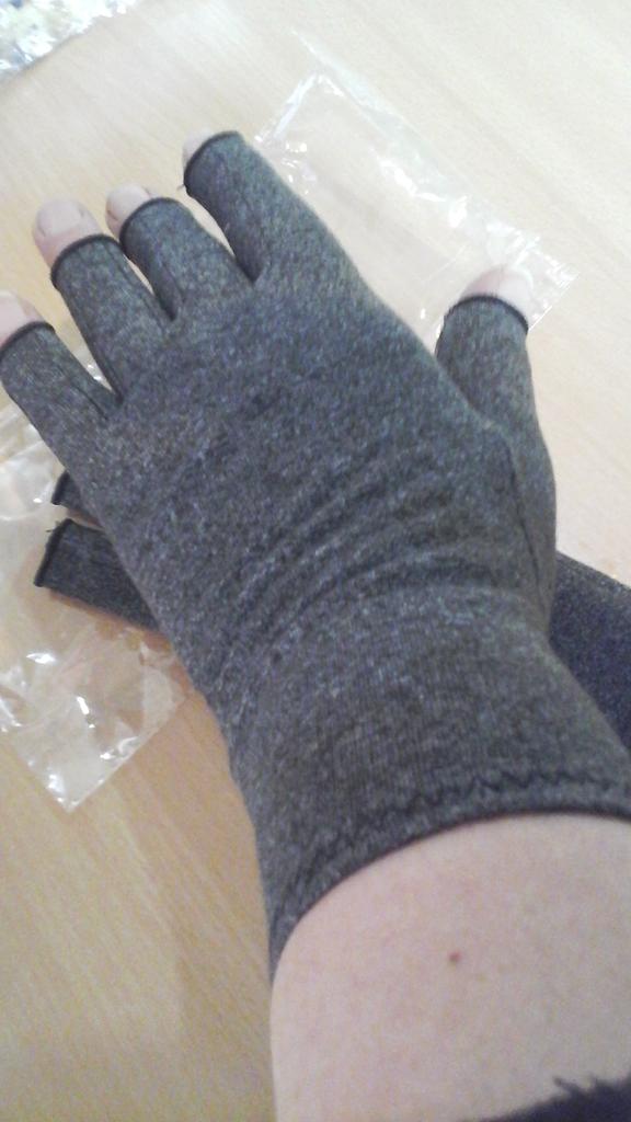 Die Handschuhe sind ein Witz schlechthin! Es sind ganz leicht Baumwoll- halbe Handschuhe, da ist nichts mit Kompression für Schwellungen,etc.! Größe L passt meinem Mann und mir ( L und XXL) , da ist eine Größenangabe überhaupt nicht nötig, wenn solch eine Diskrepanz unterstützt wird.