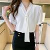 2021 sommer Chiffon Bluse Frauen Mode Weiß Frauen Shirts V-ausschnitt Kurzarm Weibliche Kleidung Mit Krawatte Blusas Mujer 15063