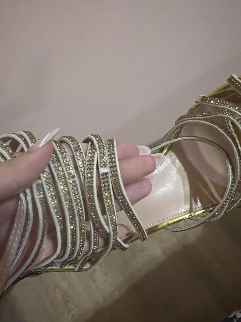 Gold Bling Bling Kristall Sexy Sandalen High Heels Riemchen Gladiator Damen Sandale Stiletto Hochzeit Rheinstein Größe 35-42