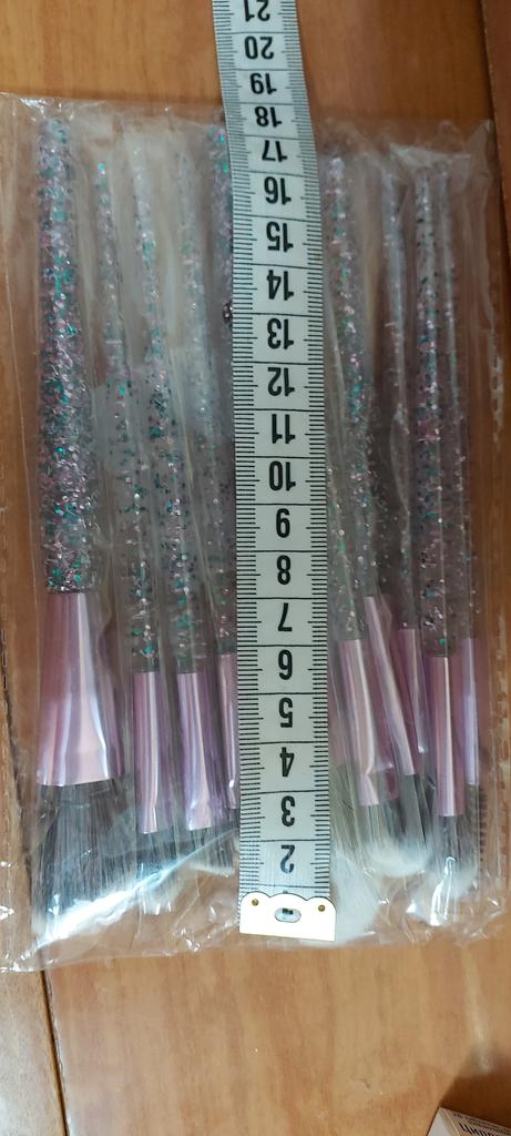 herrlich Sie wirken handgemacht wie ein Bastelgegenstand Der Griff scheint aus Harz mit Glitzer im Inneren zu sein, er ist wirklich kostbar, sehr luxuriös und zieht die Aufmerksamkeit für seine Schönheit auf sich. Sehr gute Qualität, super weich, sie geben auch keine Haare ab, ein Wunder 100 % effektiv und 100 % empfehlenswert Verpackung 📦 jede Bürste in einer Tüte ist super, super sorgfältig verpackt und dann alles in einer Tüte und durch Luftpolsterfolie geschützt Lieferung nach Spanien 🇪🇸 superschnell ✈️ früher als erwartet 🌟🌟🌟🌟🌟 Ich könnte nicht glücklicher sein