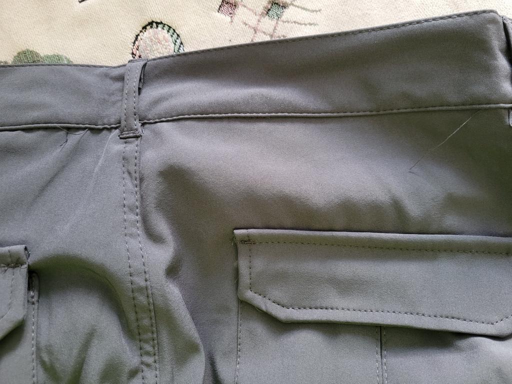 Das Aussehen ist ganz hervorragend; der Stoff ist elastisch, wasserdicht; Die Schneiderei ist nicht die beste, an vielen Stellen ragen Fäden heraus; Bei meiner Größe (L) ist die Taille groß, aber der Gürtel hilft dabei.