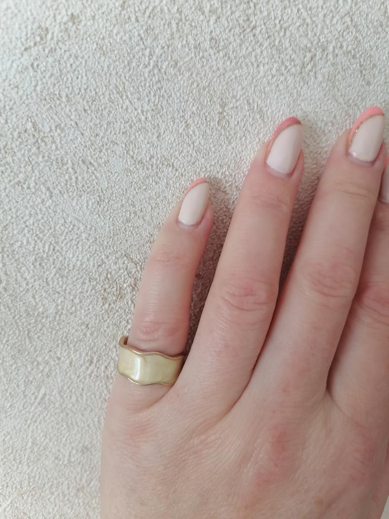Am kleinen Finger! Und die Farbe ist wirklich blass-blassgelb, eher beige, und ich brauchte speziell Gelb. Also generell erkennt man an dem glänzenden Metall, dass es hochwertig ist👎