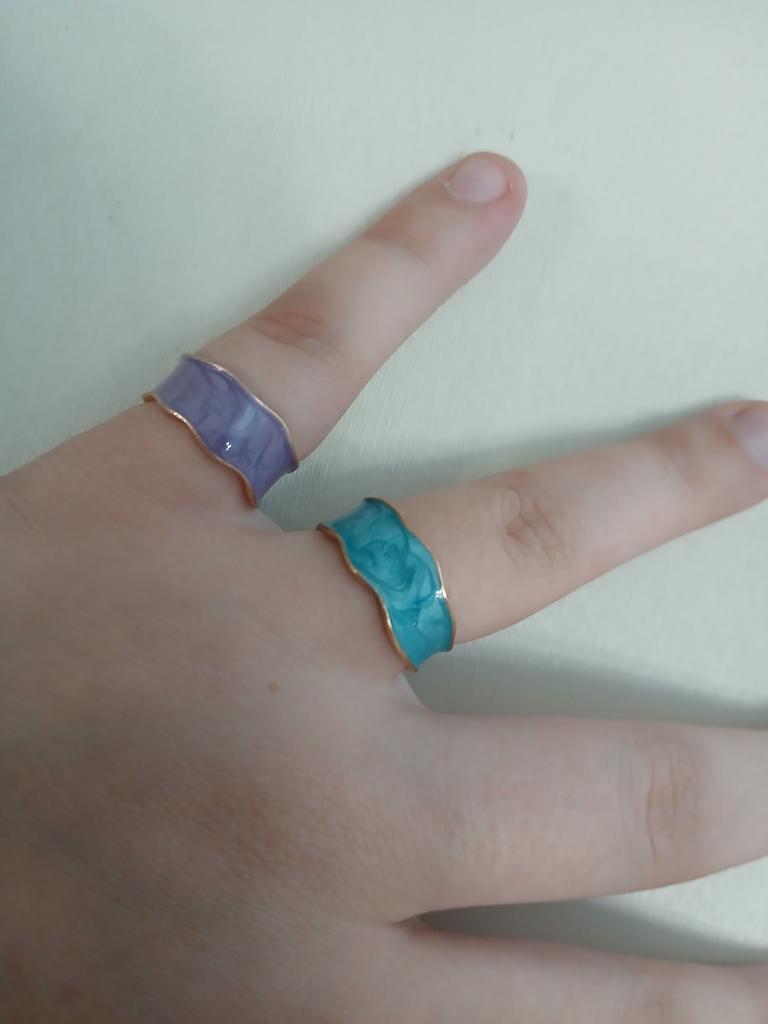 Ein wunderschöner Metallring. Wie auf dem Foto. Auf der Rückseite ist ein raues Schleifen zu erkennen, aber das hat mich nicht gestört. Die Größe ist verstellbar, dies muss jedoch sehr schrittweise erfolgen, da es sonst brechen kann. Die blaue Farbe ist satt und leuchtend. Ich empfehle