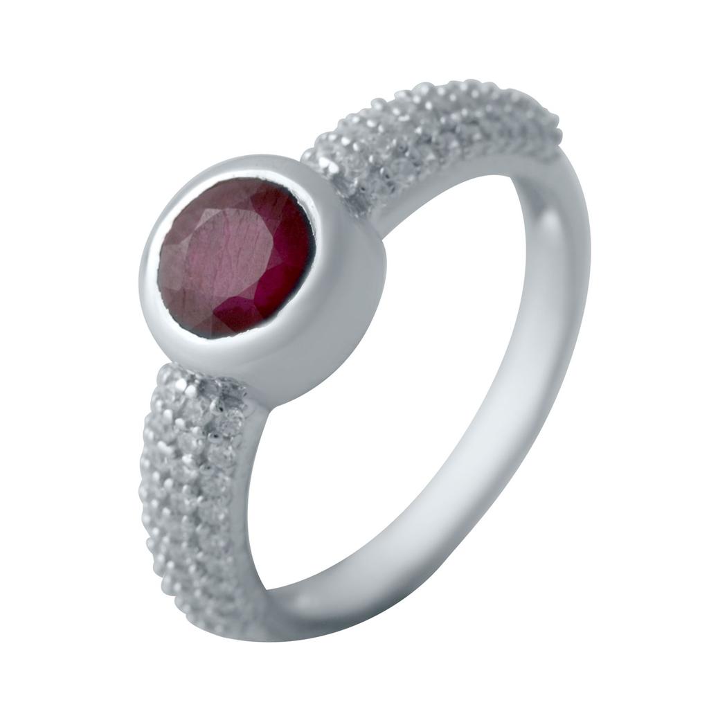 серебряное кольцо с натуральным рубином, фианитами, вес изделия 2,99 гр