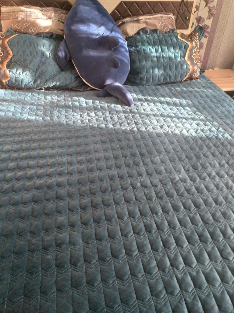 Die Tagesdecke ist sehr schön, aber es gibt keine Kissenbezüge. Das Geld für die Kissenbezüge wurde zurückgegeben. Ich habe ähnliches Material gekauft. Ich habe Kissenbezüge im Studio bestellt und gebe die Sterne zurück.