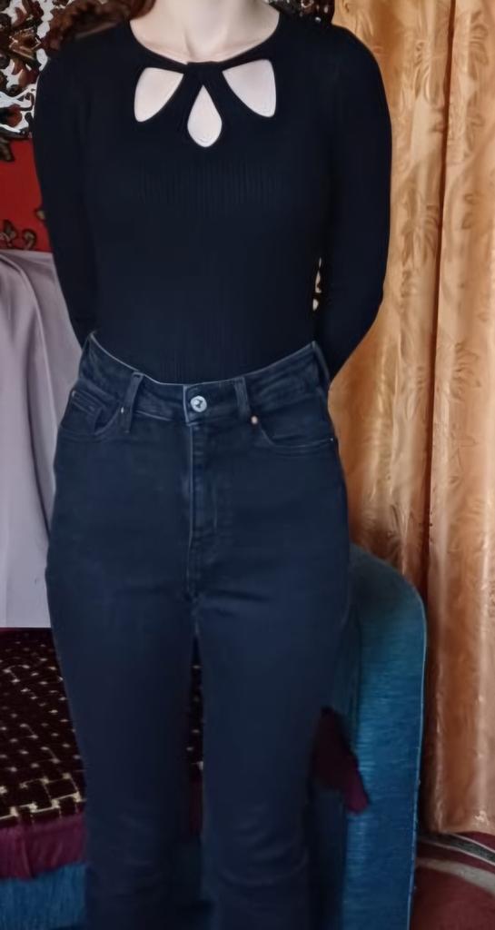 Passte genau in der Größe, passt gut zu normalen Jeans mit hoher Taille. Mit dem Kauf sehr zufrieden, hat mir sehr gefallen. Der Stoff ist weich und angenehm anzufassen.. Und von den Nachteilen habe ich auf der Rückseite Fäden bemerkt, aber ich habe sie abgeschnitten und im Prinzip ist alles gut.