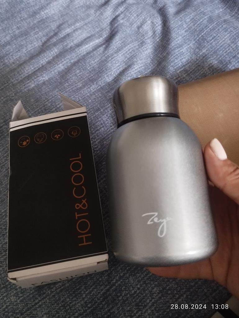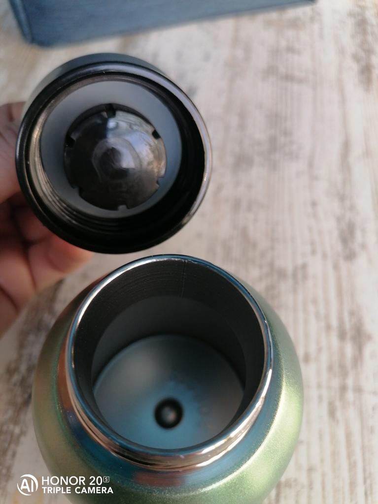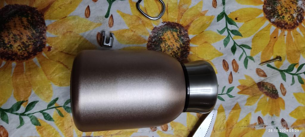Ausgezeichnete Thermoskanne, gefüllt mit kochendem Wasser, um 16:00 Uhr am nächsten Tag um 11:00 Uhr gut warm, ohne Geruch, der Körper ist von außen kaum warm. Ich würde eine solche Thermoskanne für ein größeres Fassungsvermögen kaufen, habe sie noch nicht gefunden