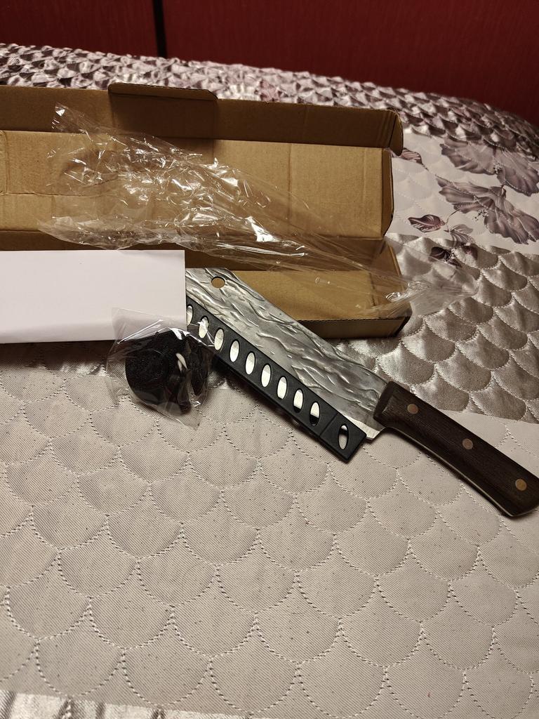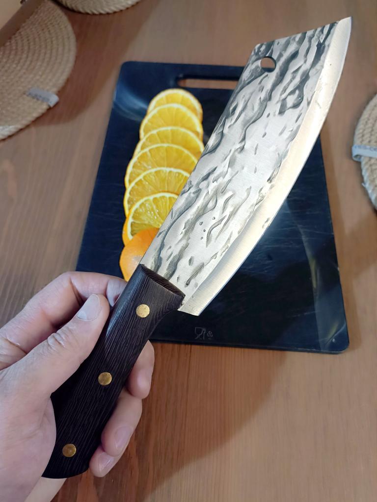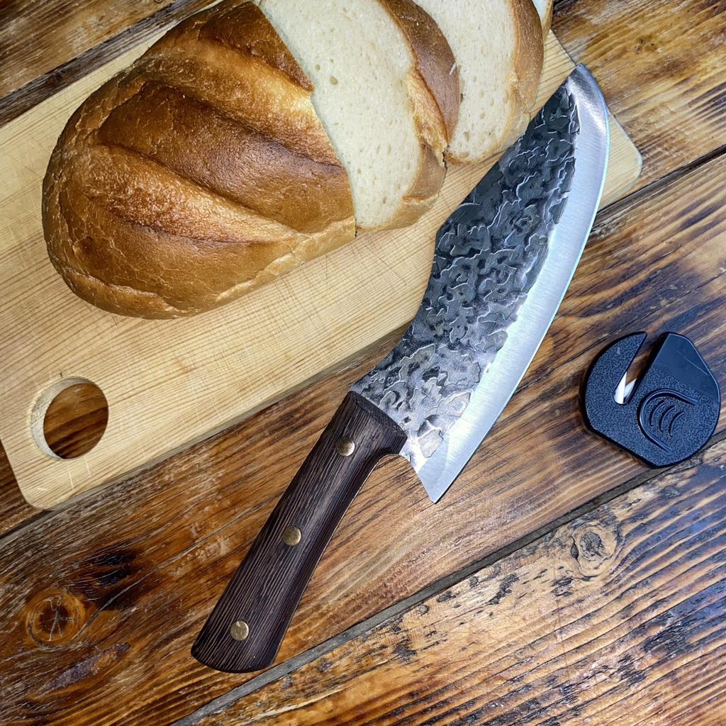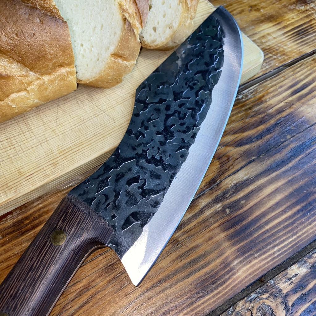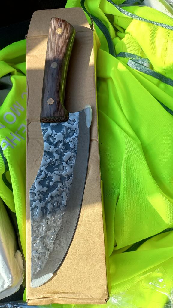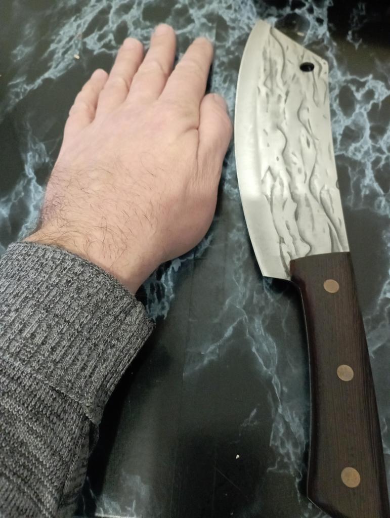 Ein Messer, das jede Küche braucht. Der Stahl ist super. Scharf, schneidet mühelos Papier, schneidet eine Tomate im Handumdrehen) Behandelte gefrorenes Hackfleisch ohne Probleme. Die Dicke des Stahls beträgt 2,5 mm.