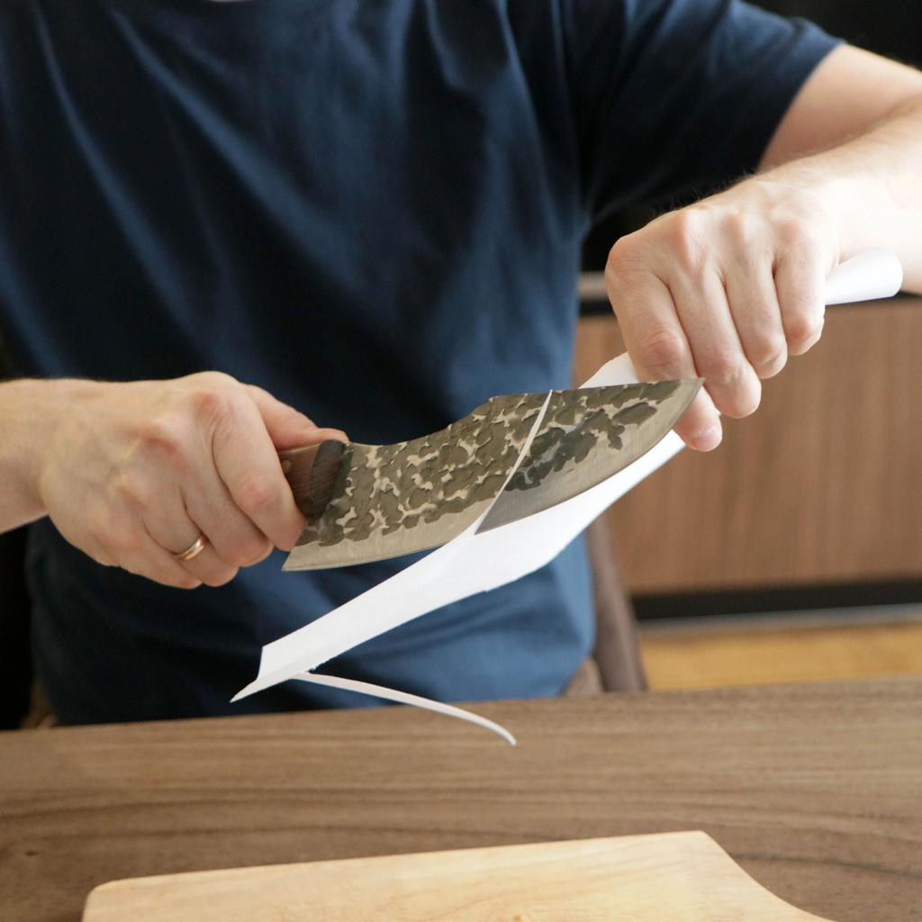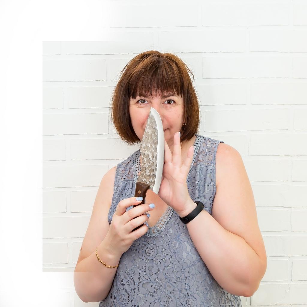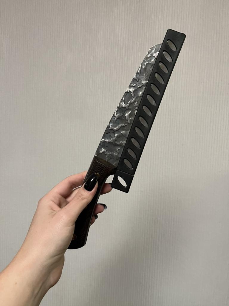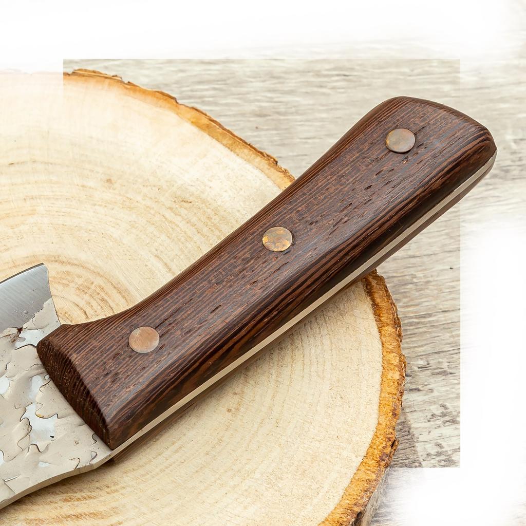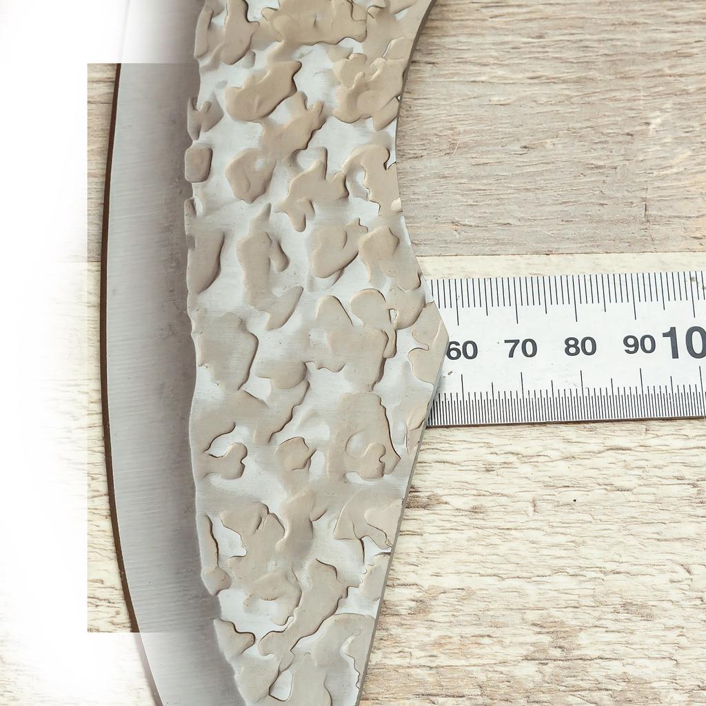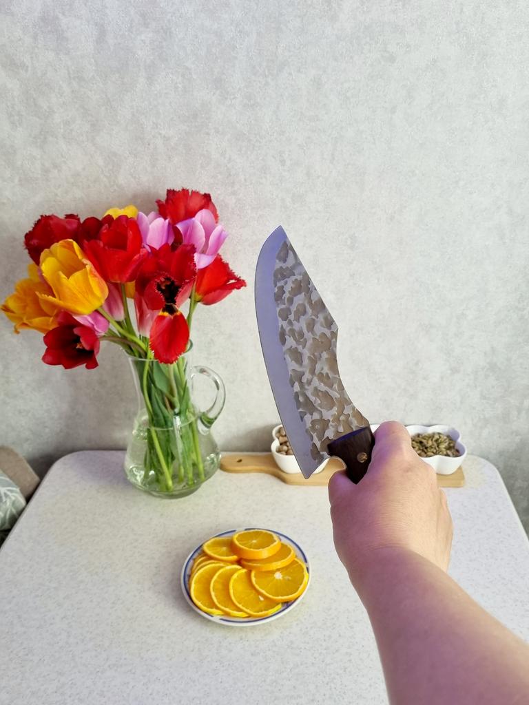 Ein Messer, das jede Küche braucht. Der Stahl ist super. Scharf, schneidet mühelos Papier, schneidet eine Tomate im Handumdrehen) Behandelte gefrorenes Hackfleisch ohne Probleme. Die Dicke des Stahls beträgt 2,5 mm.