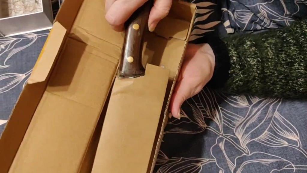Das Messer ist ausgezeichnet, scharf. War gut verpackt in einem Karton.