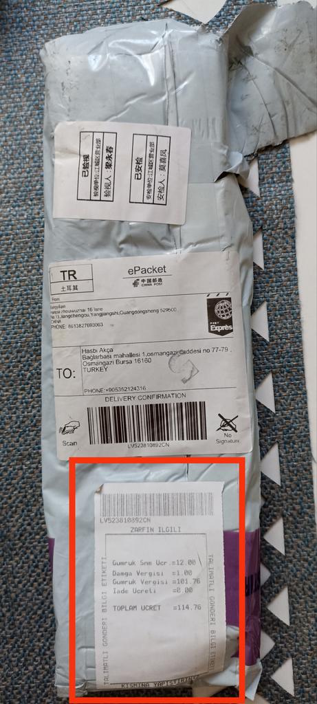 Meine Bestellung ist angekommen, ich habe 212 TL Steuern bezahlt, so viel hatte ich nicht erwartet. Das hat mich schockiert.