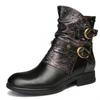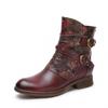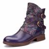 Johnature Echtes Leder Schuhe Damen Stiefel Reißverschluss Winter Runde Zehen Druck Handgemacht prägnant Freizeit Knöchel Plateaustiefel
