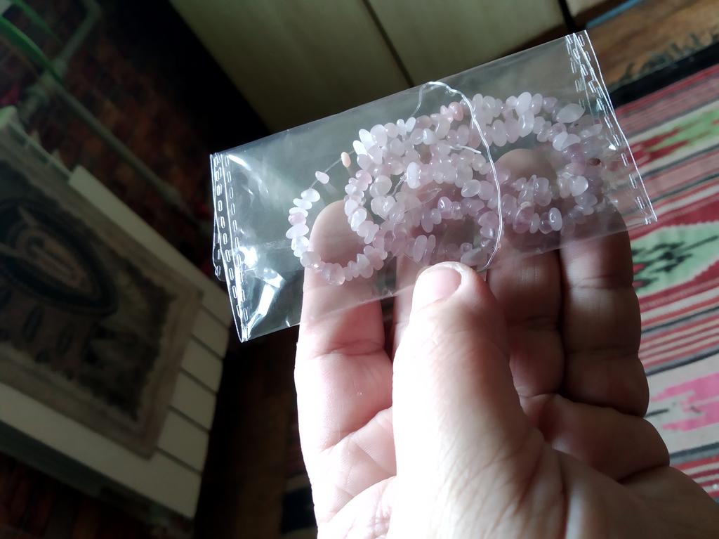 Ich habe zwei Steinstränge bestellt – Rauchquarz und einige grüne. Der Rauchquarz ist wunderschön, genau das, was ich wollte. Die grünen Kieselsteine sind sehr klein, aber die Länge beider Fäden ist gleich, es gibt also mehr davon. In der gebeizten Form beträgt die Länge des Fadens 38 cm. Die Fäden kamen zusammen mit anderen Bestellungen in einem Paket an, jeder ist einzeln in einer Plastiktüte und einem Beutel aus Luftpolsterfolie verpackt, so dass die Steine auf keinen Fall zerbrechen der Weg.