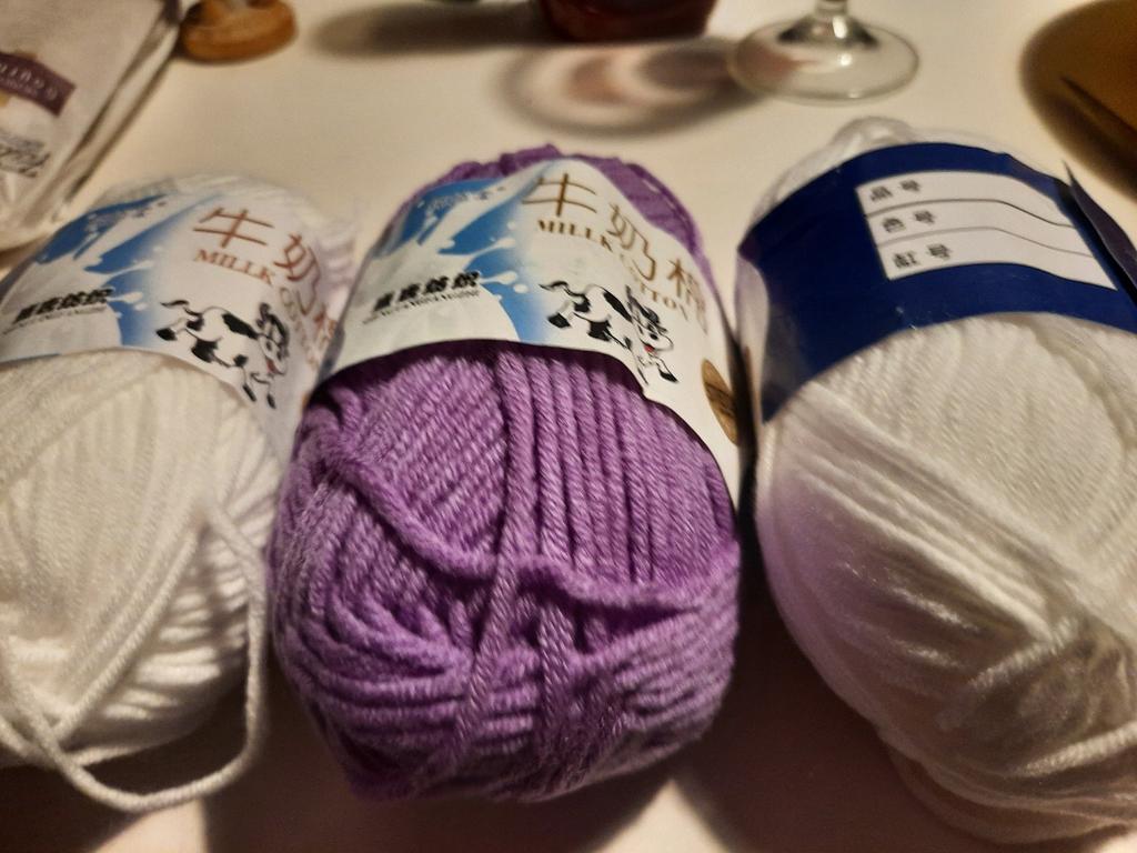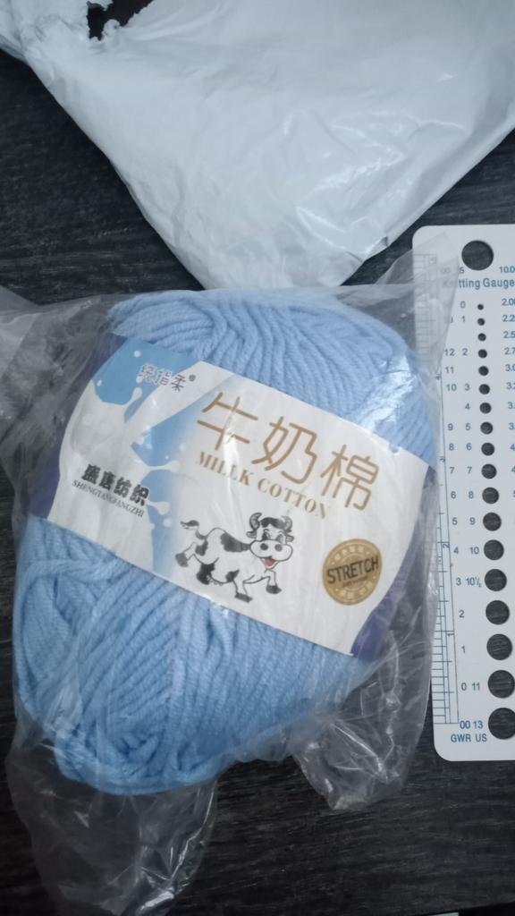 Dicker Faden, angenehm anzufassen. Die Menge von 50 gr. Ich habe einen Baby-Strampler gemacht. Der Winter wird sie auf jeden Fall warm halten.