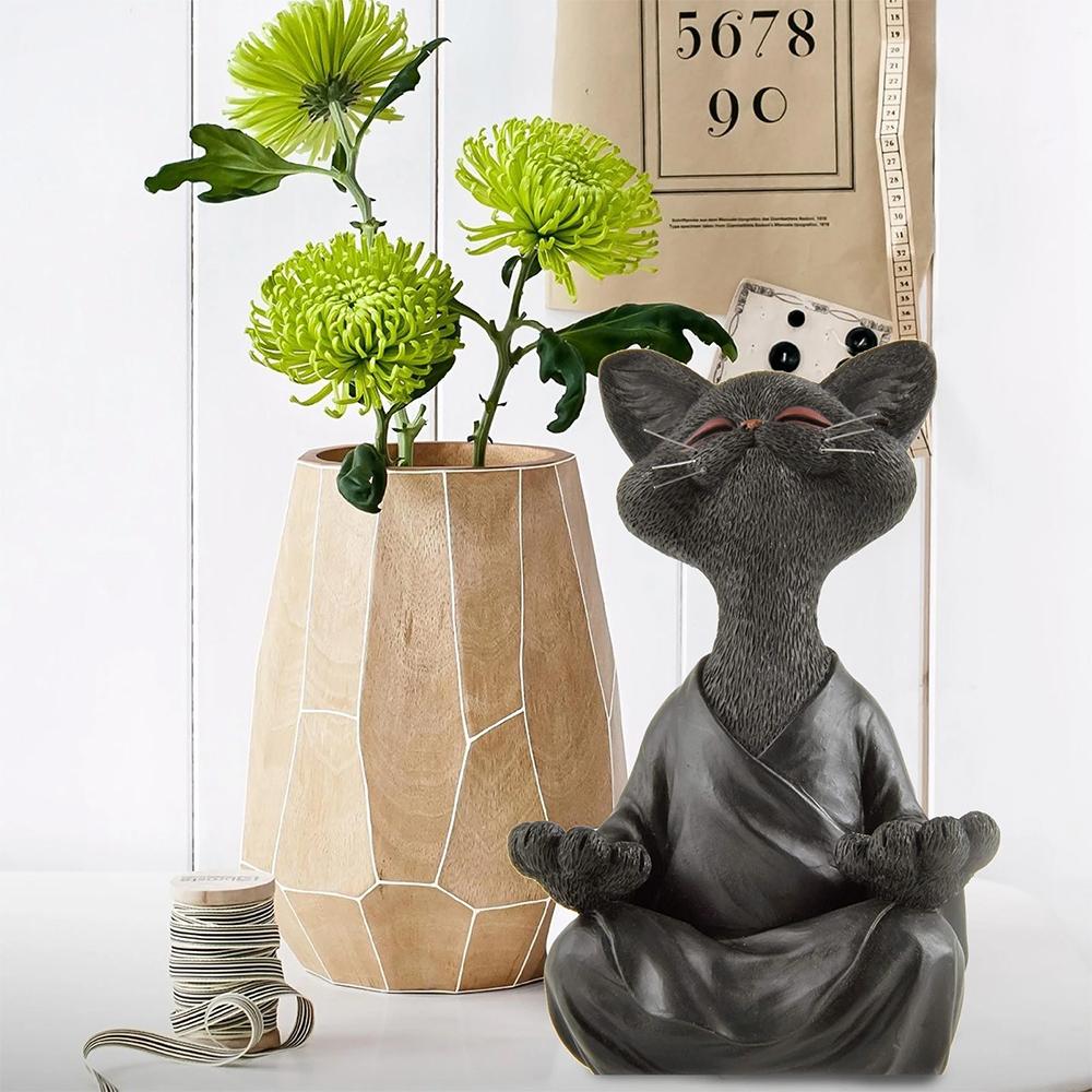 Skurrile schwarze Buddha-Katzenstatue, Meditation, Yoga-Kollektion, glückliche Katze, dekorative Kunstskulptur, Gartenstatue für den Außenbereich