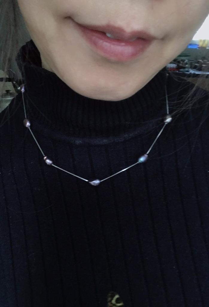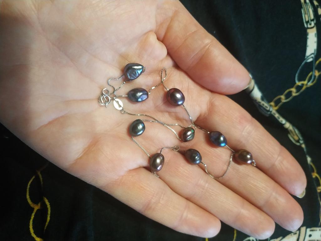 Sehr zarte Halskette. Perlen sind groß. Die Kette ist dünn, aber stark.